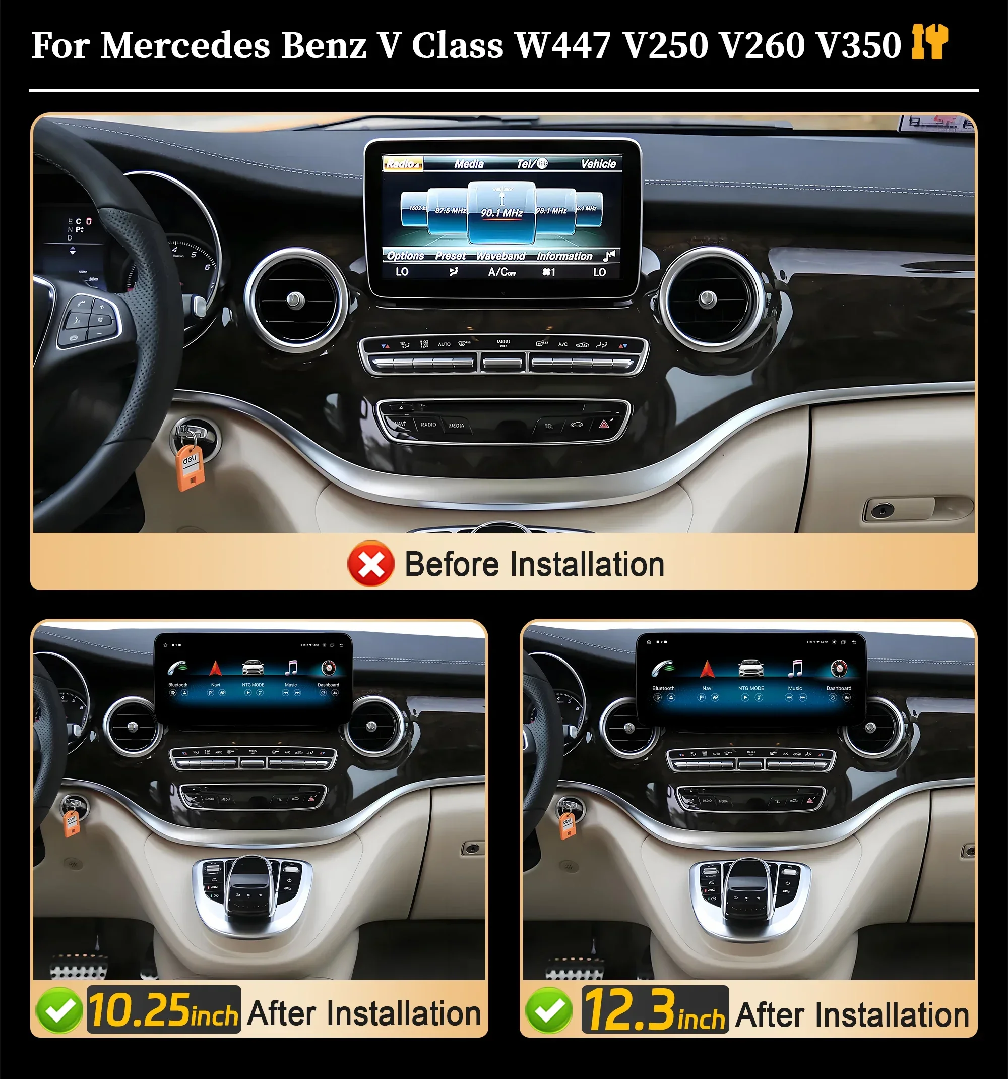 Car Radio For Mercedes Benz V Class W447 V250 V260 V350 Android 14 4G Wireless BT Carplay Snapdragon 680 Head Unit Touch Screen