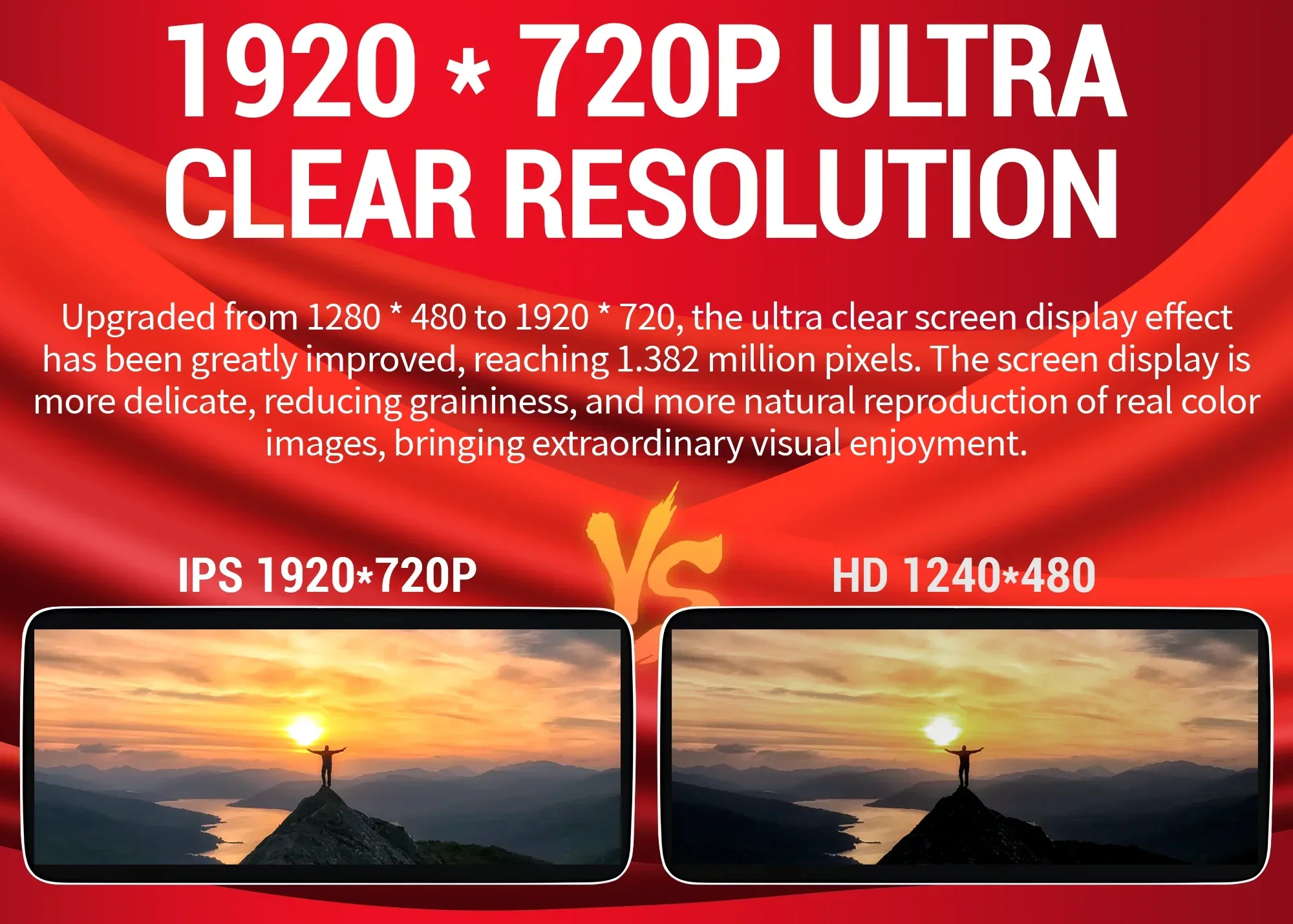 - 1920 x 720 IPS touch screen,Support 4K HD video, split screen, PIP function.