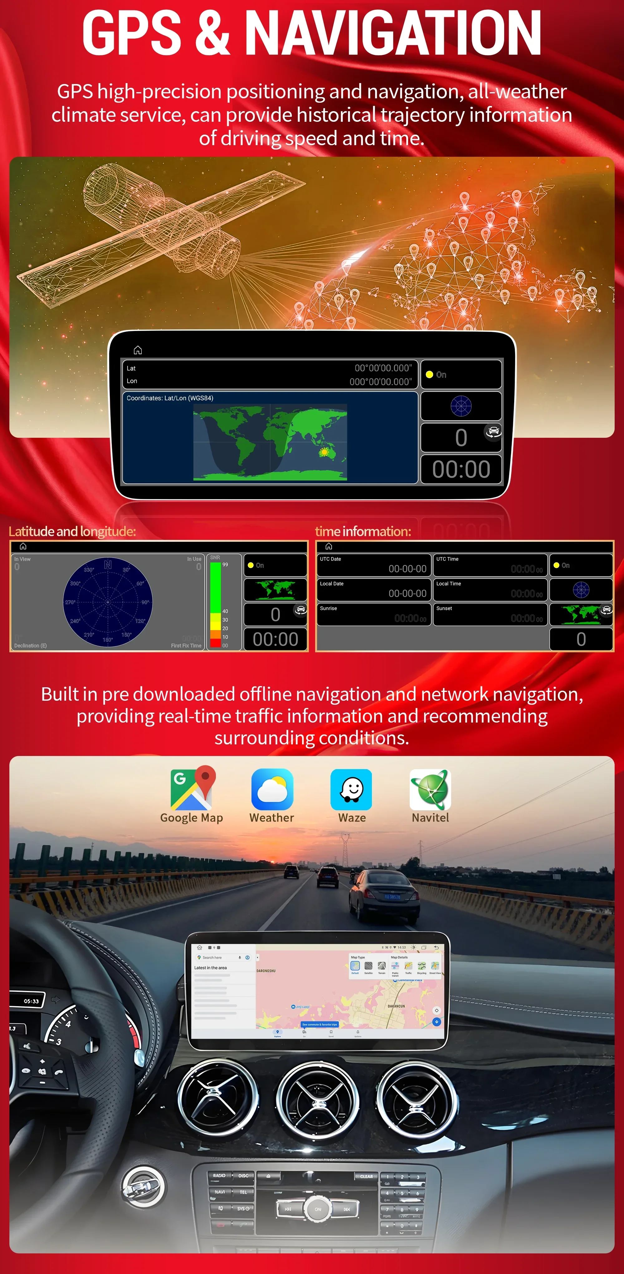 - Built-in GPS/Glonass, supports google maps, Navitel and WAZE etc.