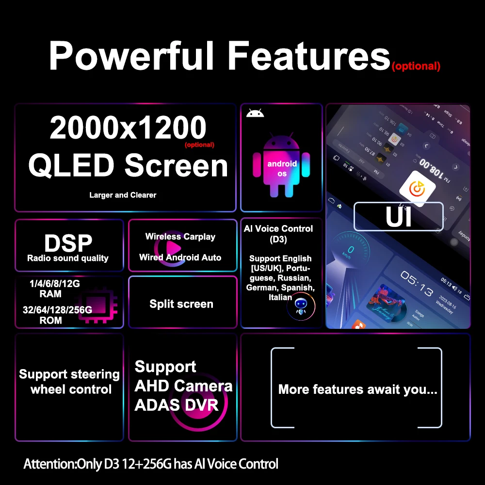 4+32G/4+64G/8+128G is QLED 1280*720P