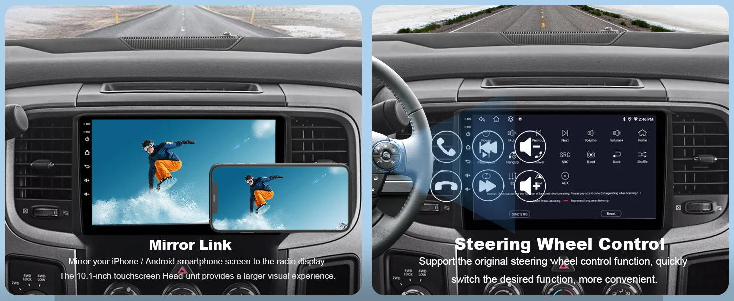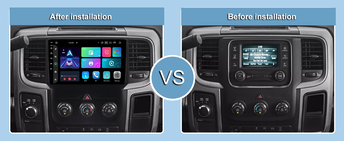 Car Radio Stereo for Dodge Ram 1500 2500 3500 2013 2014 2015 2016 2017 2020 w/Manual AC Upgrade Dash Kit, Android Touch Screen R