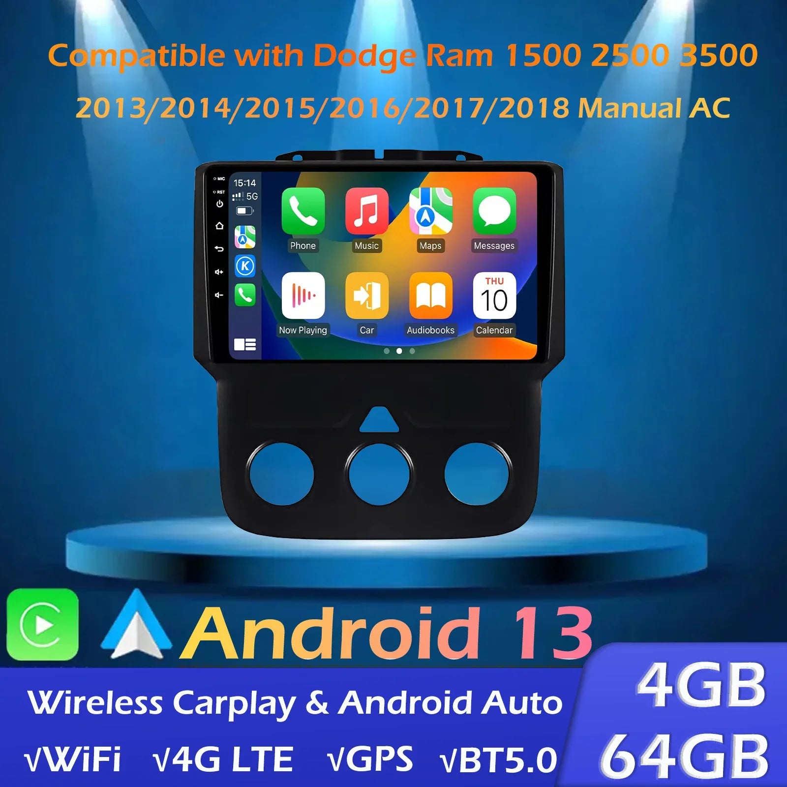 Android 13 Car Radio for Dodge Ram 1500 2500 3500 2013-2017 2020 w/Manual AC