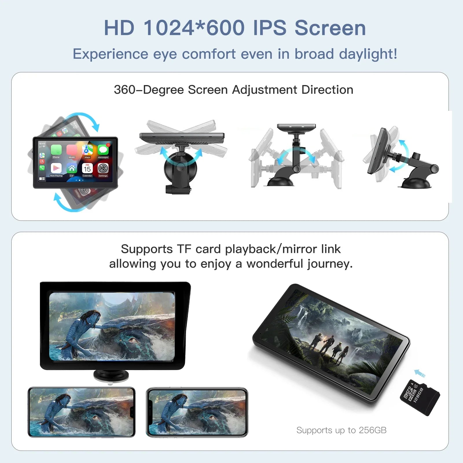 4. Wireless Carplay & Android auto, suitable for Apple and Android mobile phones, you can synchronize mobile phone pages when you get in the car
