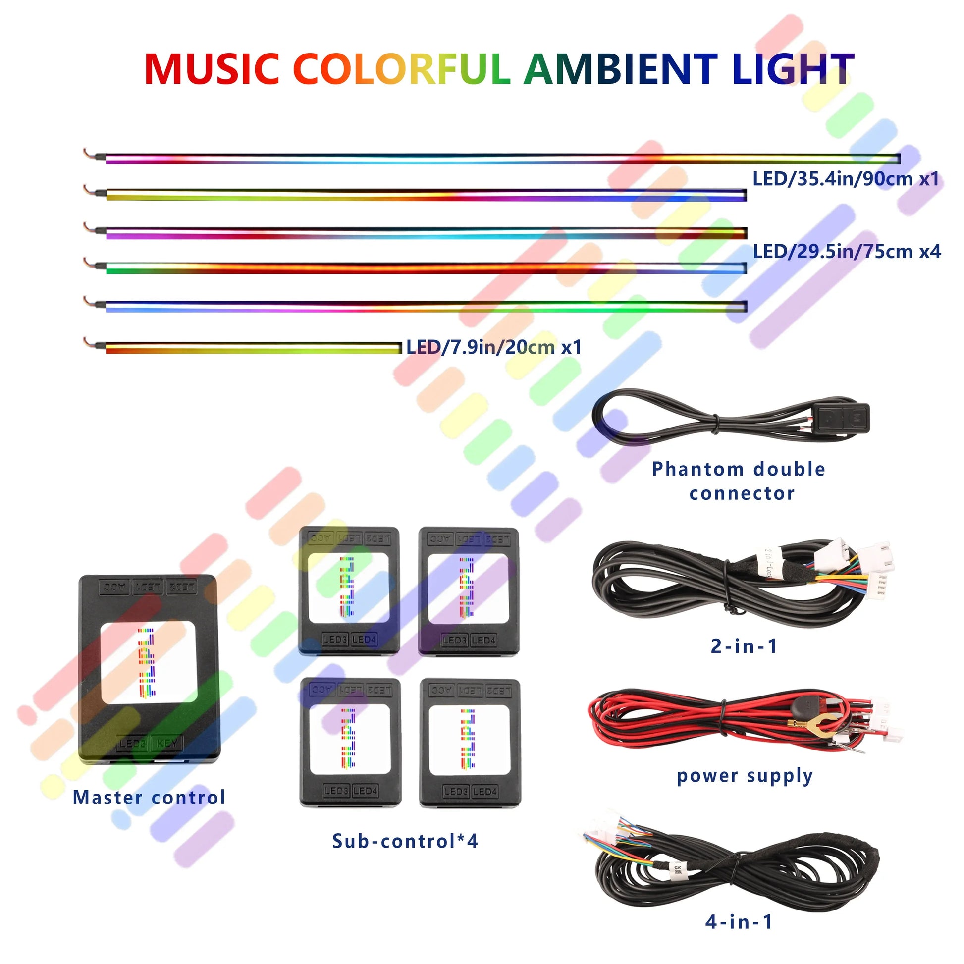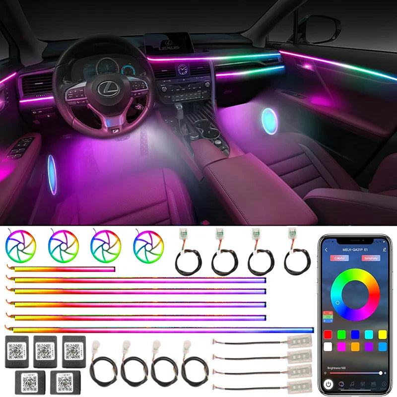 Car Symphony Ambient LED Lamp Strips Remote App Control Auto Interior Accessories 64 RGB Rainbow Atmosphere Acrylic Lights 22in1