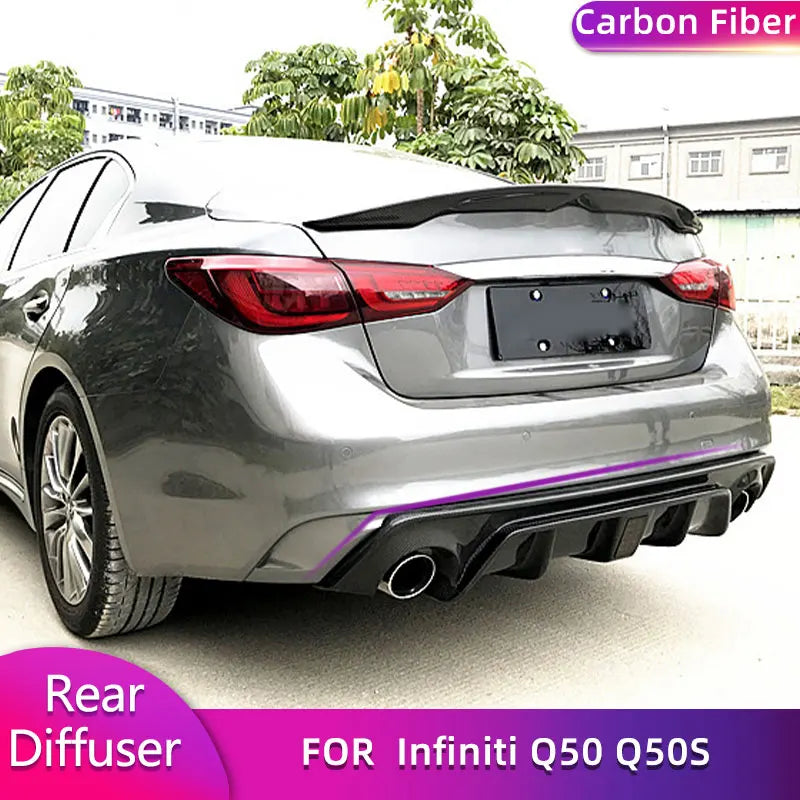 Carbon Fiber Rear Bumper Diffuser Lip Spoiler for Infiniti Q50 Q50S Sedan 4-Door 2018 2019 Car Rear Diffuser Apron Lip Body Kit