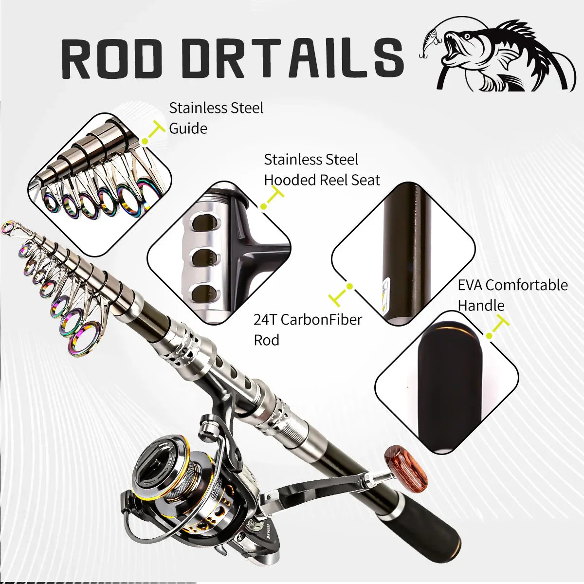 Carbon Lure Rod Wheel Set Sea Fishing Rod Telescopic Fishing Rod Rotating Reel Travel Fresh Water Fishing Set