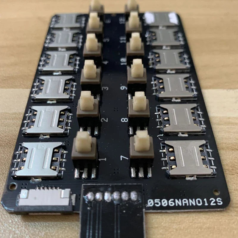 2.Card socket function: 12 Nano (small card) can be inserted into the 12-position card socket at the same time, and 8 Mini (large card) can be insertedinto the 8-position card socket at the same time. Each switch controls eachindependent card socket. Lock switch, press to open, pop up to close,only one switch can be opened at a time, (cannot open 2 or more switchesat the same time, otherwise it will cause no service)
