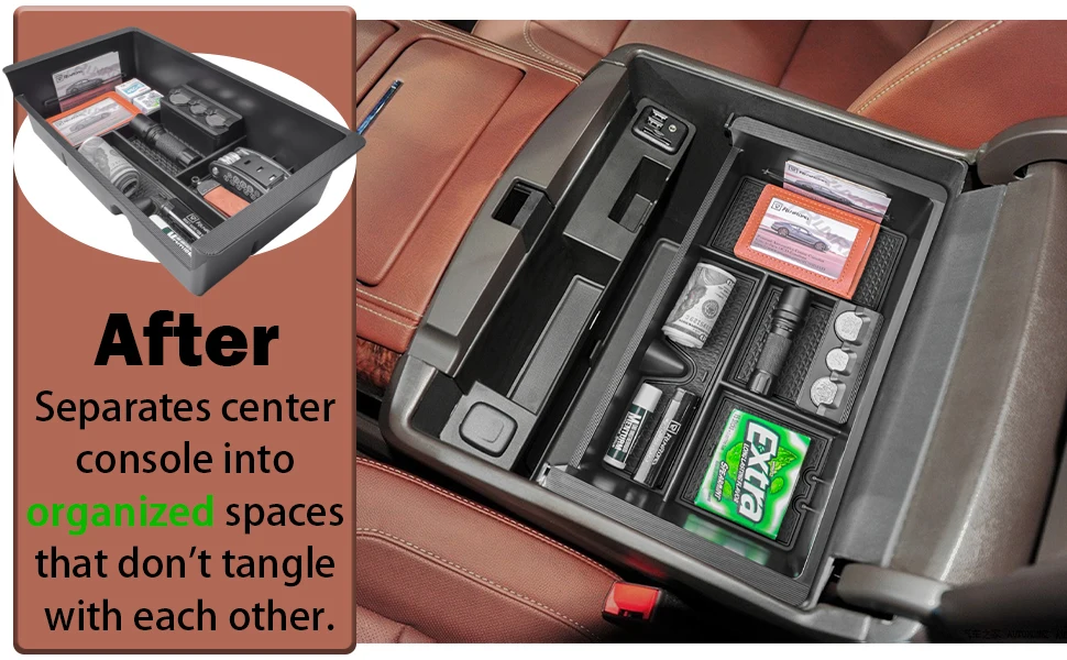 HIGH QUALITY:Made from quality ABS plastic with matte finish, Waterproof material, and no special smell, let it tough enough to withstand impact which you driving on road. Each insert tray company with 4 anti-slipping rubber pad keep things from sliding around, give you a comfortable and quite driving environment.