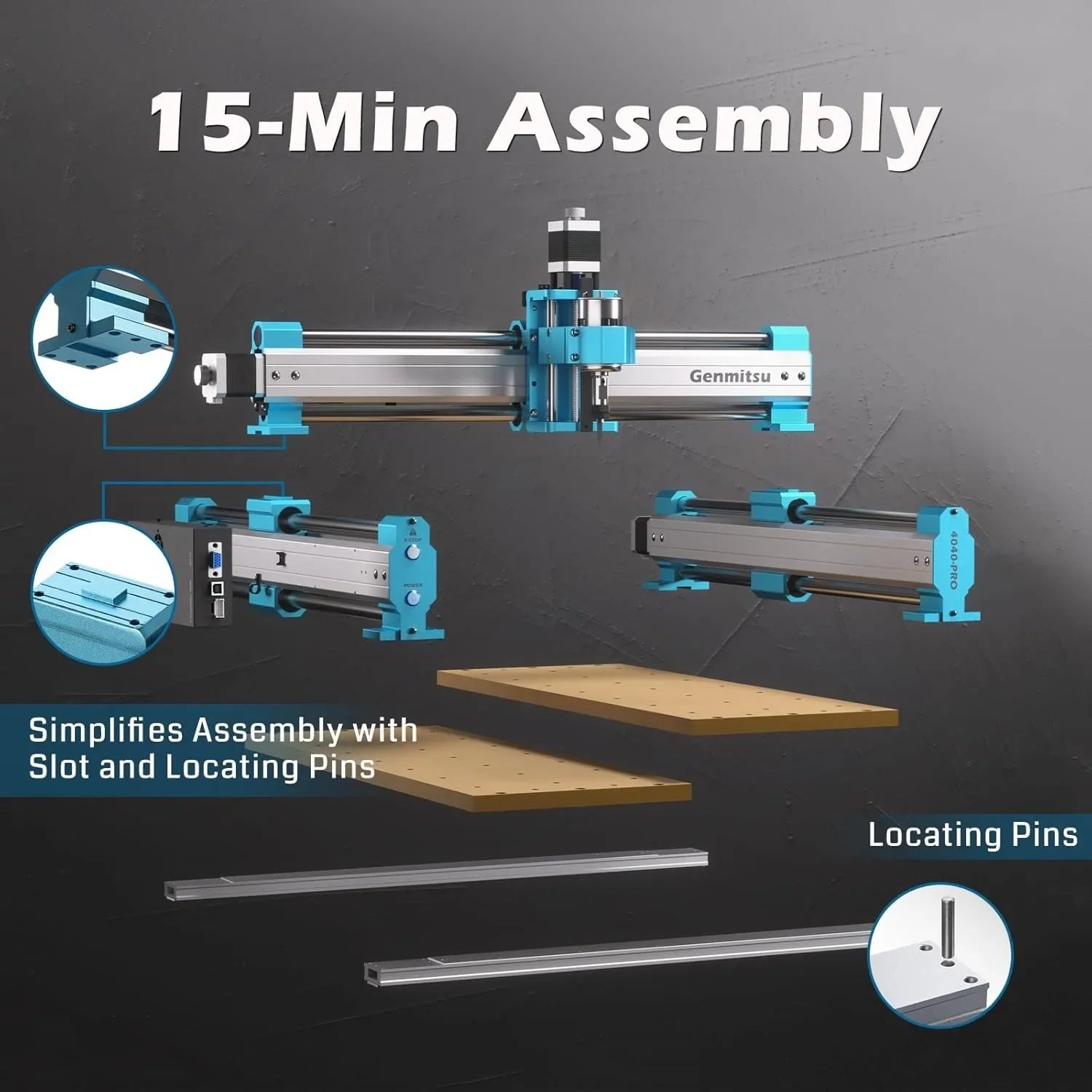 - All main parts are pre-assembled and it just takes about 15 minutes to finish the whole machine assembly. The spoilboard is combined by two pieces of MDF boards. Each MDF board could be replaced individually. You don't need to replace the whole spoilboard when a panel gets damaged.
