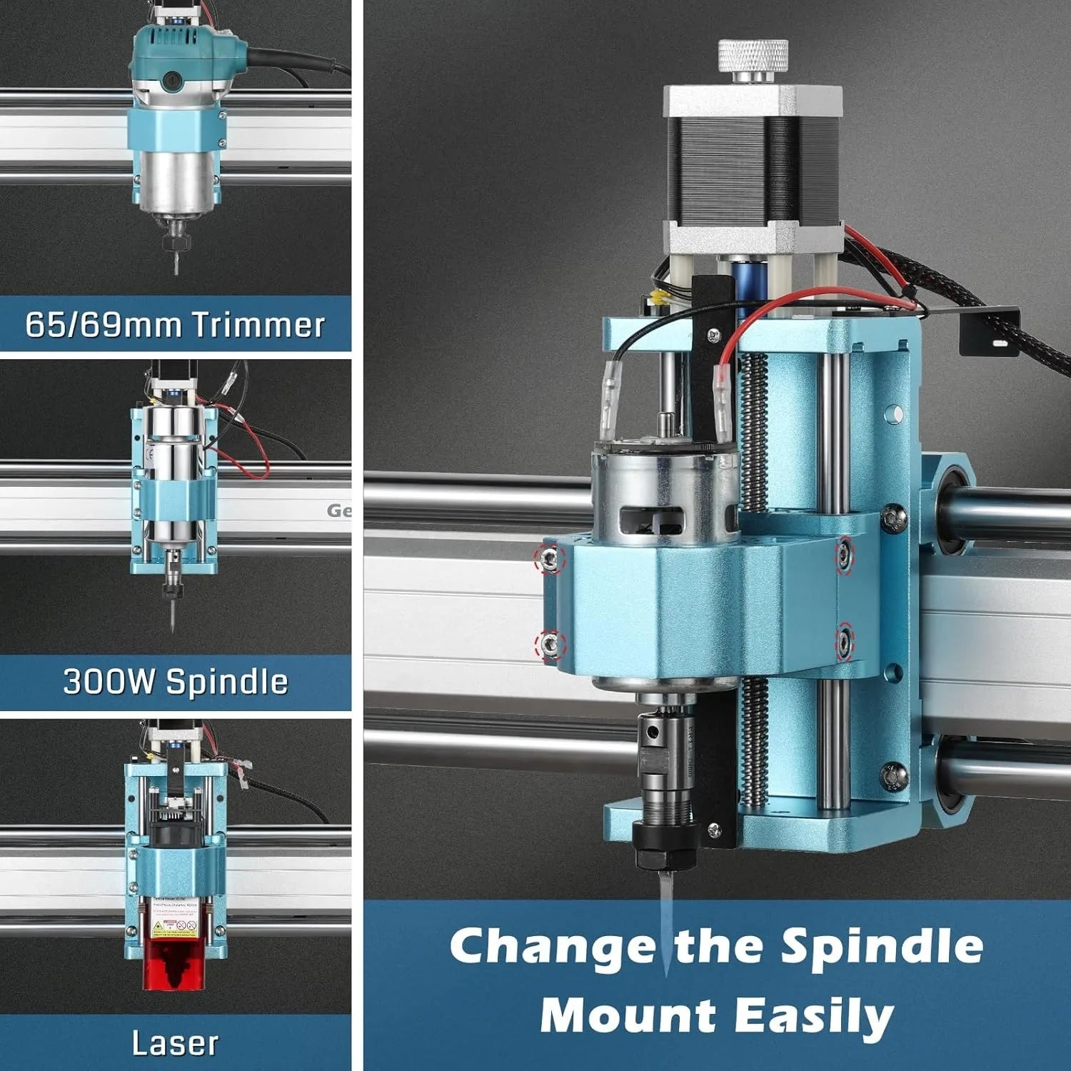 - The 4040-PRO CNC machine is supplied with 42mm and 52mm spindle mounts. The additional 65mm (B0BRZSY475), 69mm (B0BRZSVVK3) spindle mount, and other upgraded accessories are available to order. You can easily upgrade the machine according to your needs. If you get stuck, check out the SainSmart Resource Centre (see User Guide) or contact us with any questions you may have.