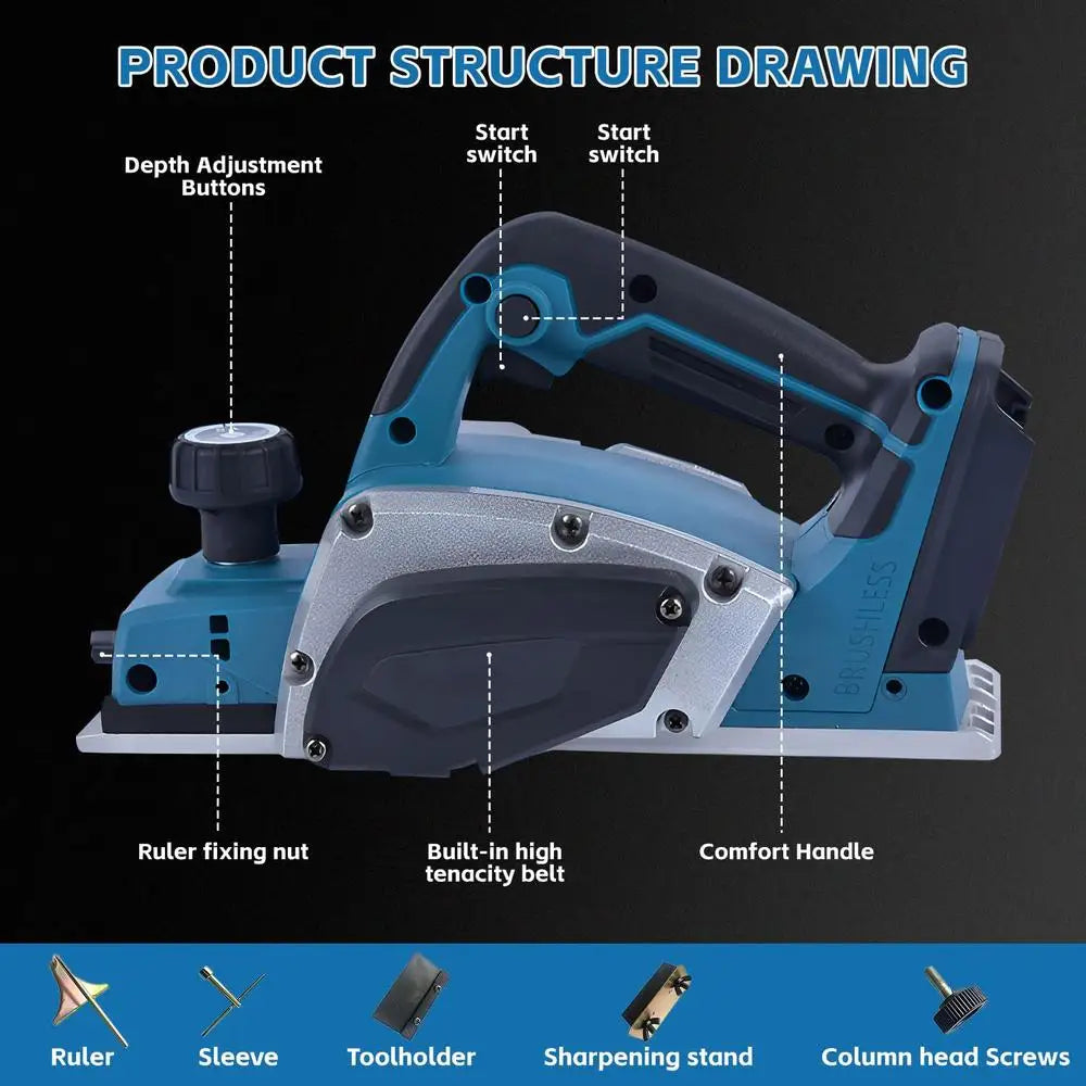 Cordless Hand Planer Brushless Wood Planer 3-1/4" Compatible with Makita Battery 20000RPM Electric woodworking tool Ergonomic power tools