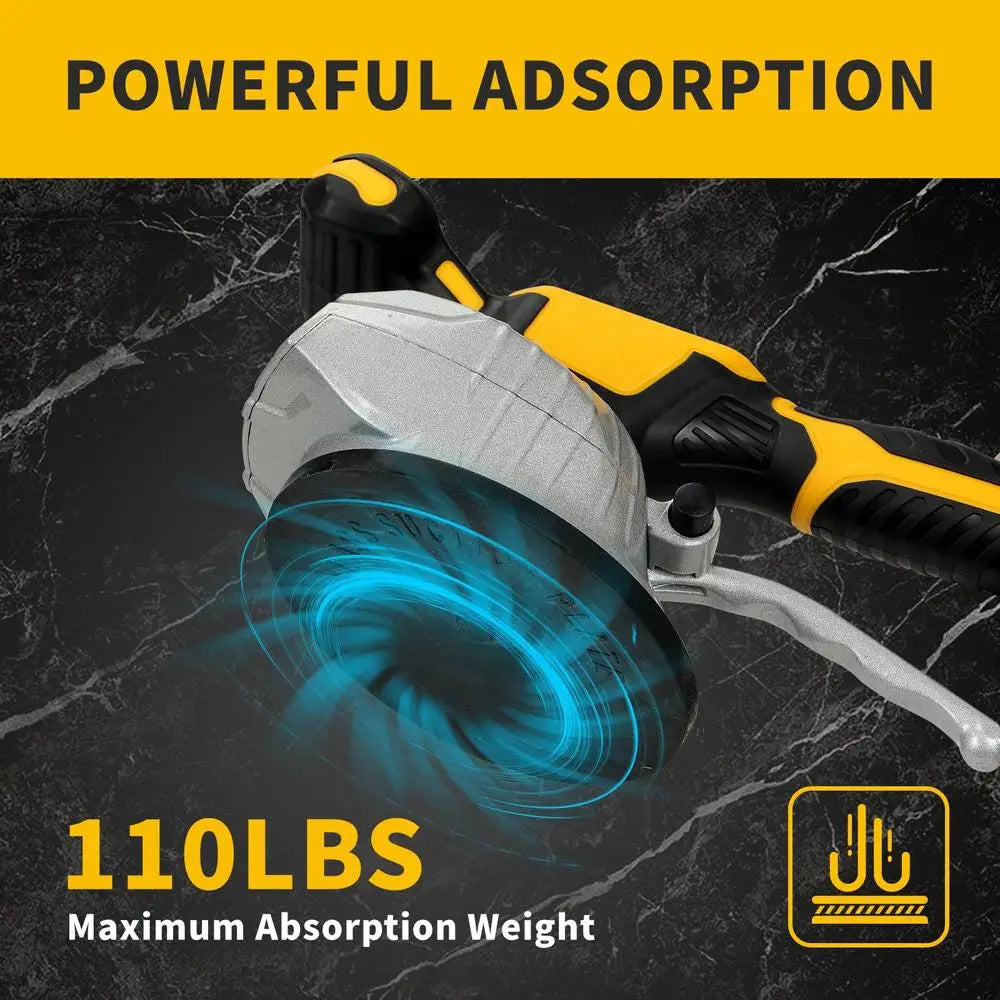 The Suction cup diameter is 5. 12 inches, and the maximum adsorption force can up to 110LBS, applicable for tile ranges from 8-47in.