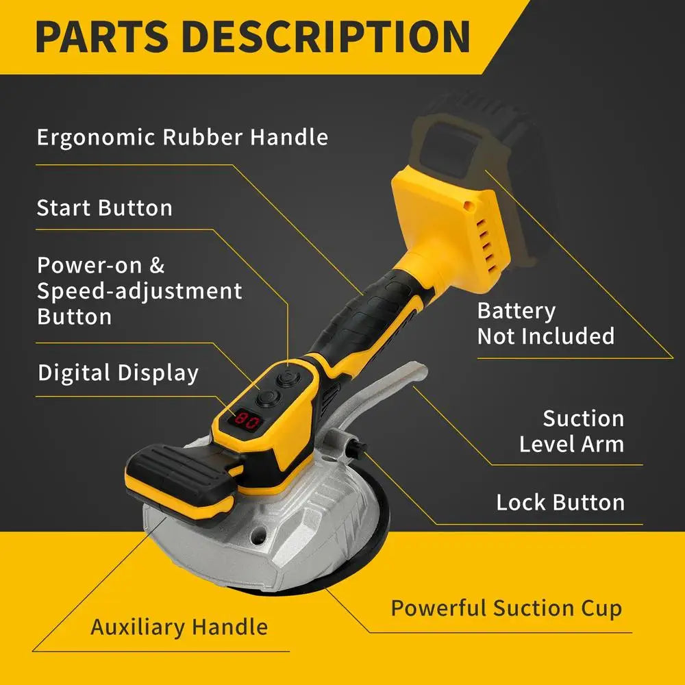 The tile machine head is made of sturdy aluminum alloy which has strong bearing capacity, and the suction cup is made with high-quality rubber which has good wear resistance. The non-slipped handle is ergonomic which can provide a firm grip when using.