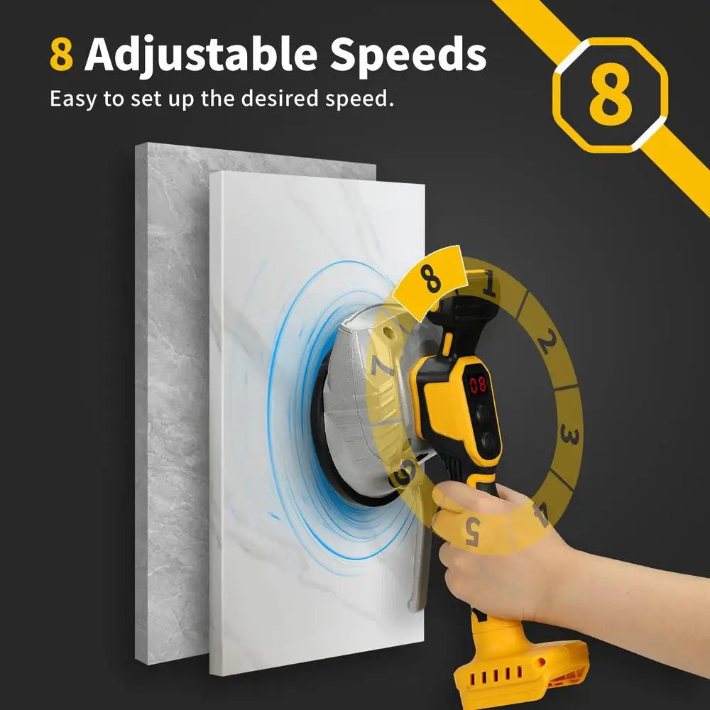 8 vibration levels for you to adjust according to the size and thickness of the tile. Just press power button to change the speed.
