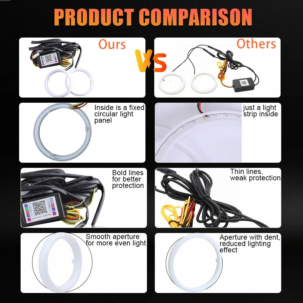 WIDE APPLICATION: This RGB APP Angel eyes suitable for Car, motorcycle,auto,automotive, Scooter. Can used for angel eyes, fog lamps, day light , led headlight, etc.
