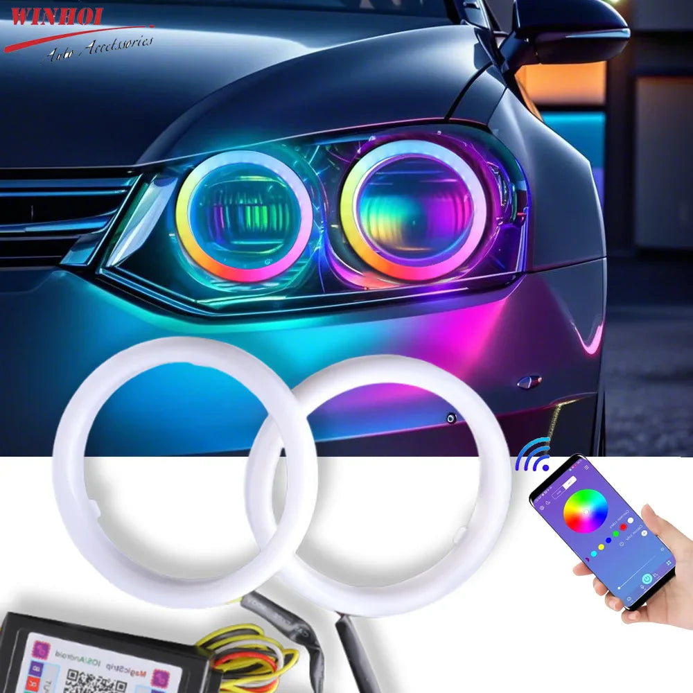 Cotton Light RGB Car LED Angel Eyes Halo Rings APP Control 12-24V Led Headlight Daytime Running Light for Motorcycle Offroad 4X4