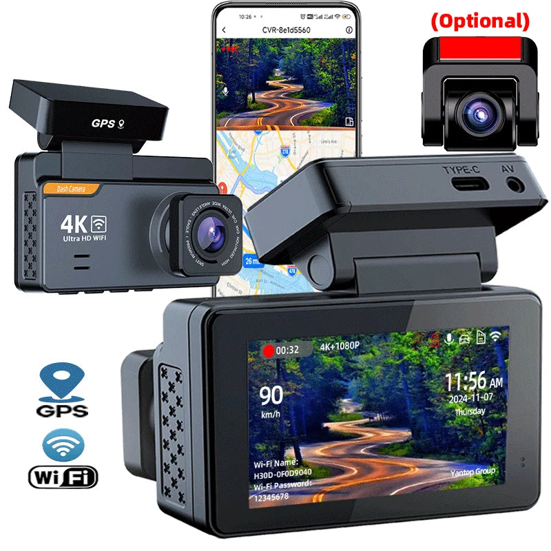 Rear Camera Upgrade: Support max 10 meters cable Rear Camera Add Features: Night Vision, 3840x2160P front Camera, 4K video resolution, WiFi, Built-in GPS tracking