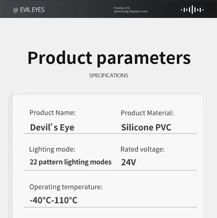 Devil's Eye Truck Windshield Remote Control Flexible Led Eye Animation Display Smart Scrolling Message Eye Soft LED Sign Board