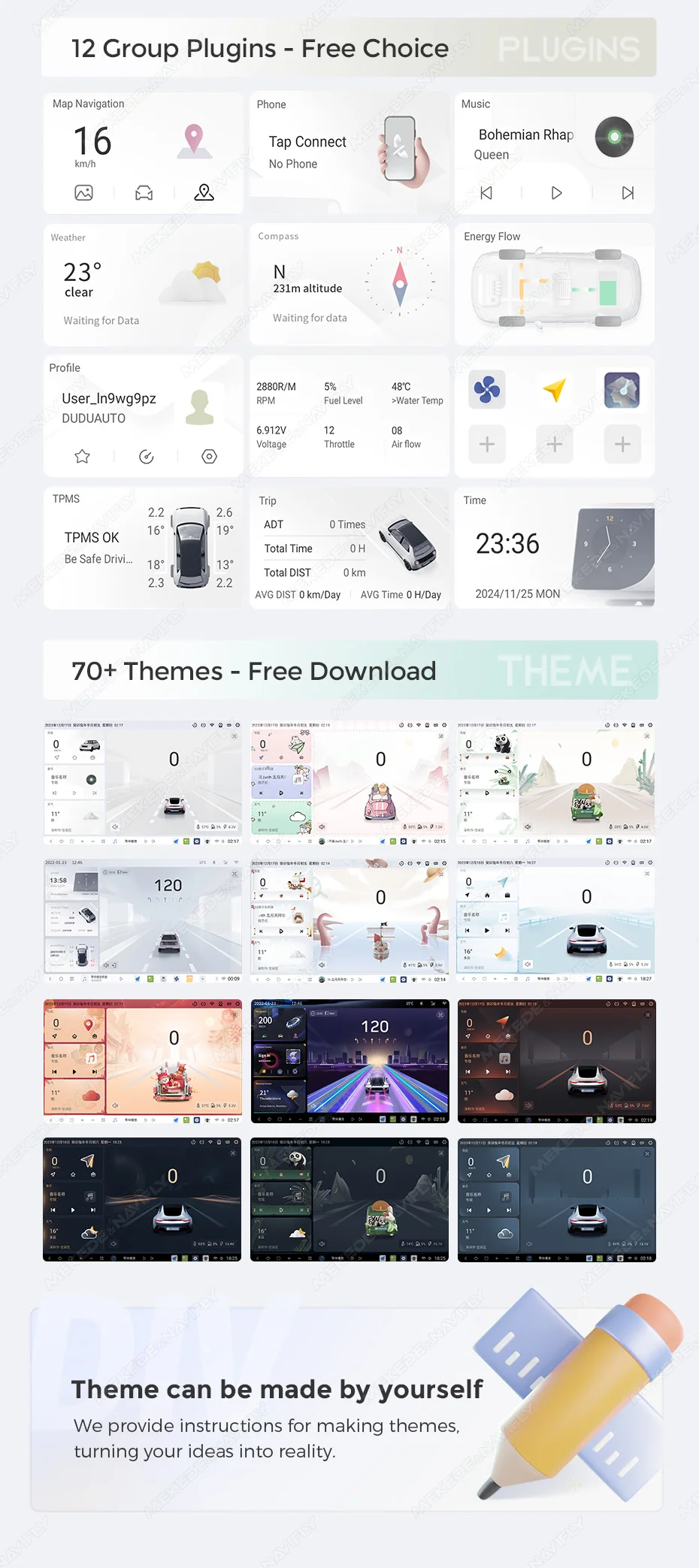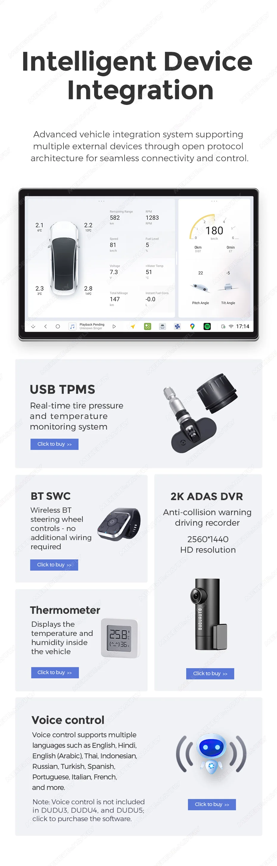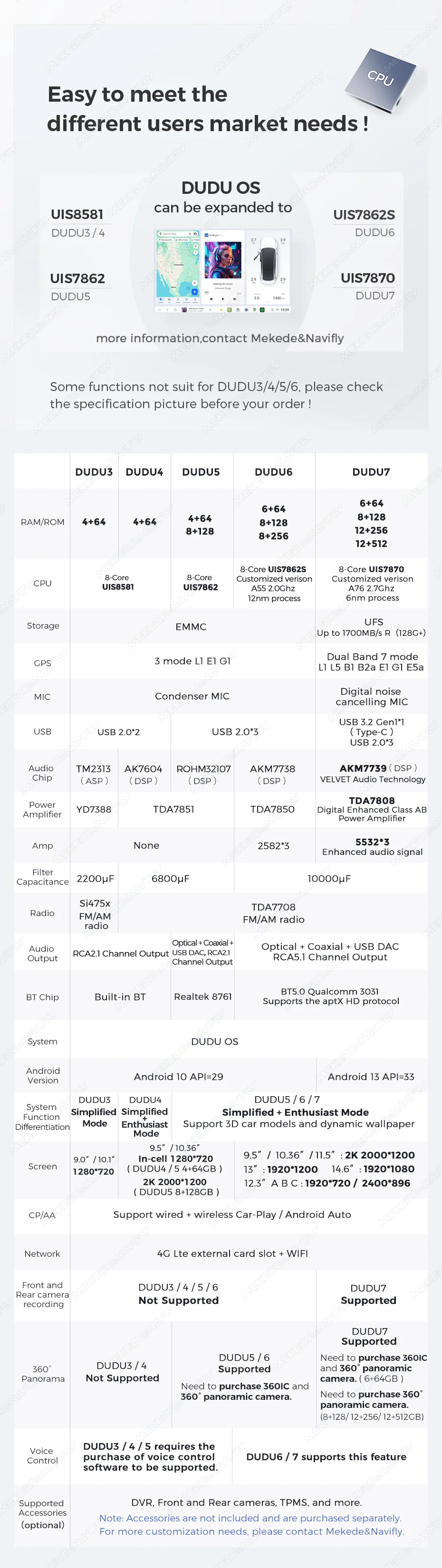 DUDUAUTO DUDU7 A7870 12.3-inch Universal Car Radio DVD Player Android 13 Wireless Carplay Navigation GPS Intelligent Systems