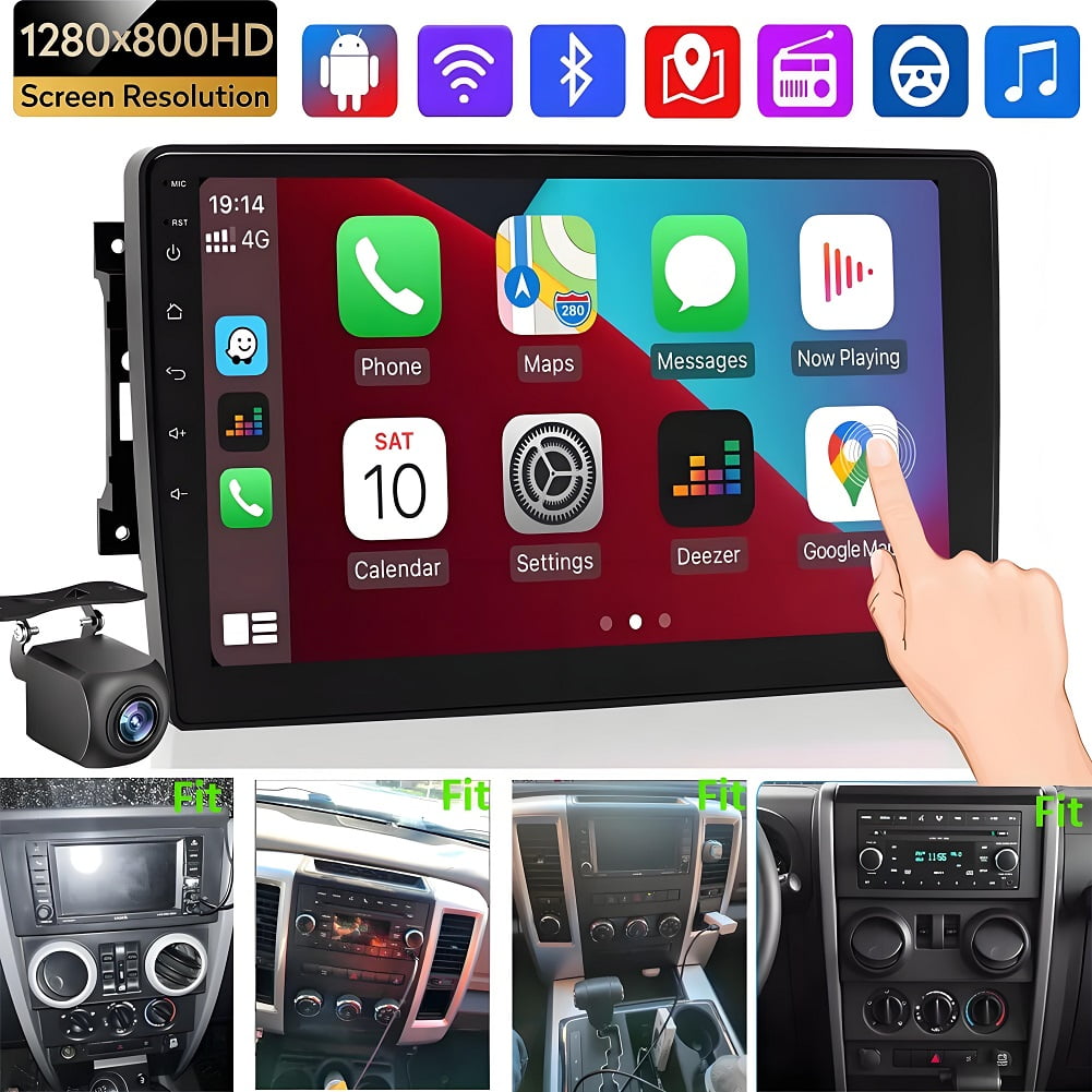 Eforcase 2G+32G Android 13 Car Stereo Radio Fit for Jeep Wrangler Chrysler Ram, 10'' HD Touchscreen with Carplay Android Auto Bluetooth WiFi, Rear Camera , FM, SWC