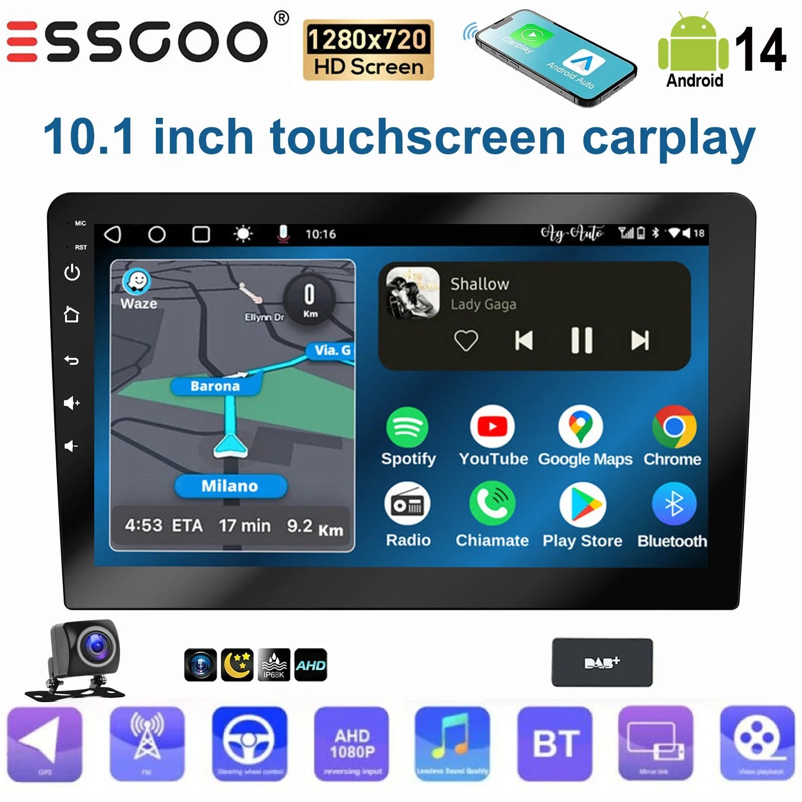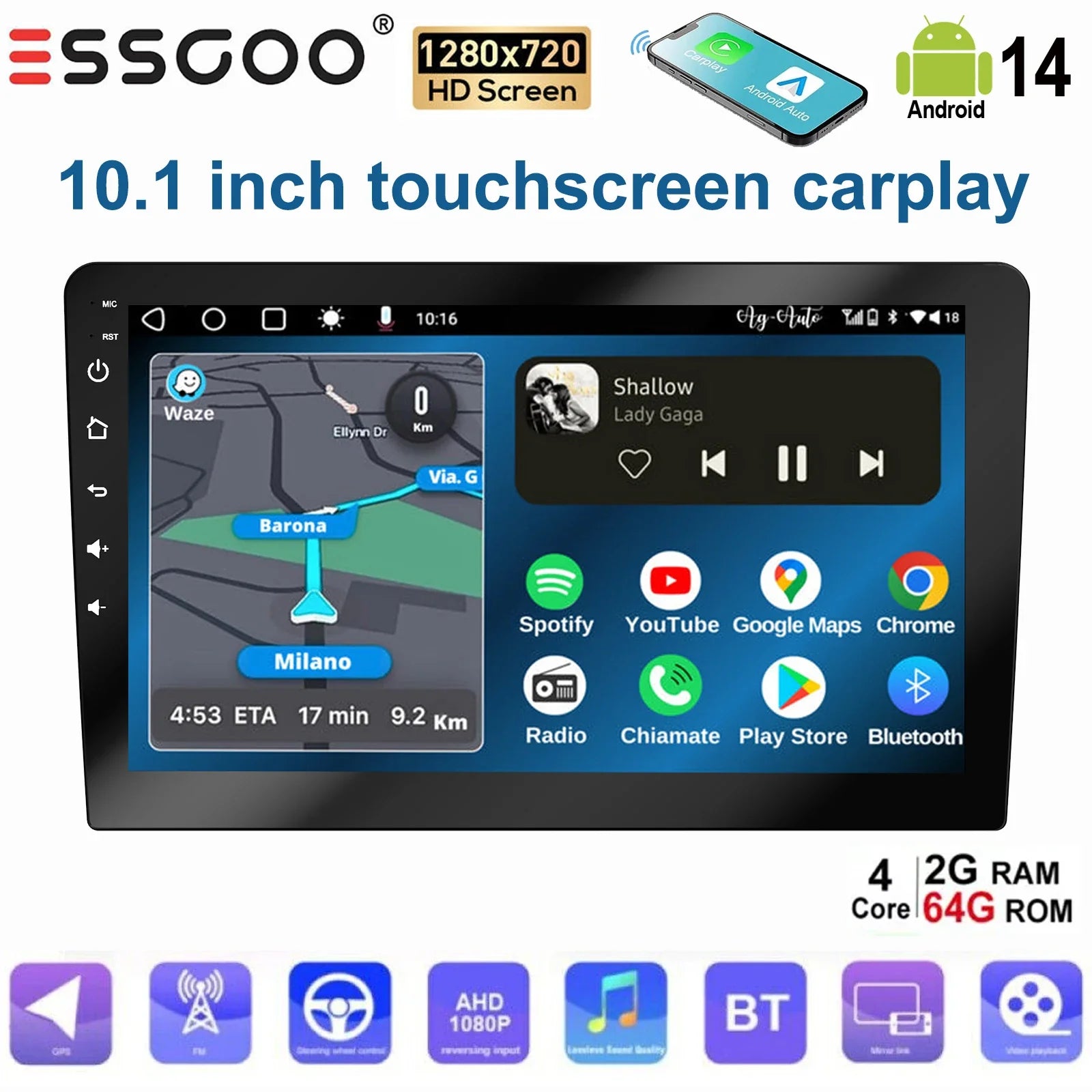 ESSGOO 10.1 Inch touchscreen 2 DIN Car stereo radio Android 14 Wireless Carplay Android auto GPS Navigation WiFi FM RDS SWC USB