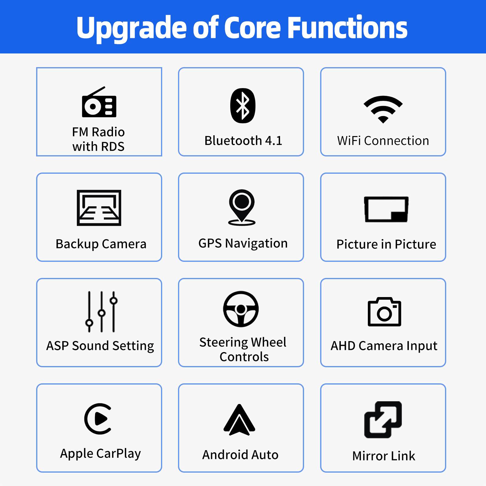 RDS/FM Radio & Bluetooth & ASP Sound Setting: Supports Bluetooth 4.1, with built-in microphone so you can make hands-free calls while driving. Support access to phone book, music playback interface, etc. RDS supported. You can save 18 FM radio stations. Built-in ASP chip. Supports 32-band EQ setting, which can be adjusted according to your personal preference. Which is very similar to your original sound. 4 x 45W amplifier, surround sound and subwoofer output