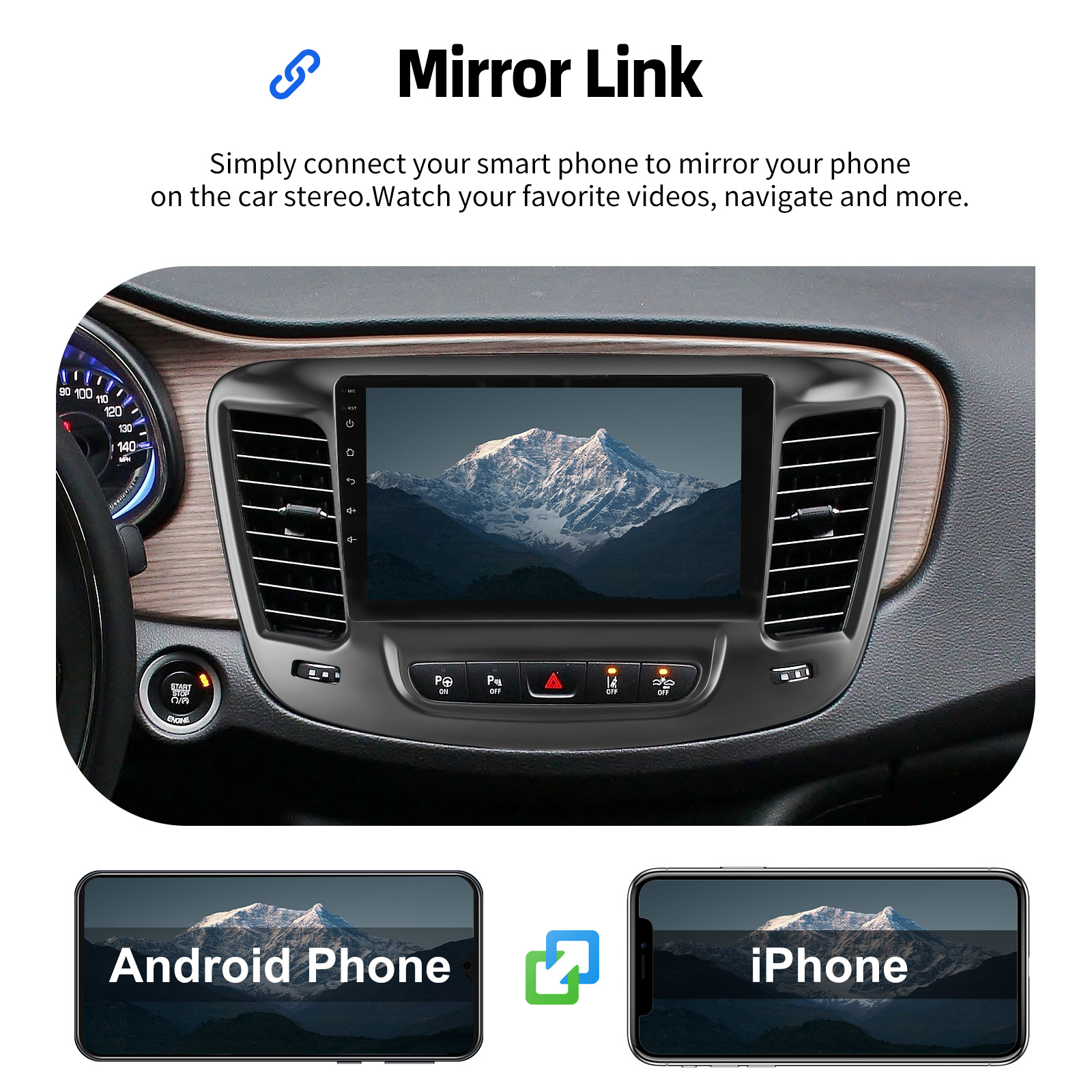 Mirror Link: With this car radio, you will experience the impressive Mirror Link function, compatible with iOS and Android phones. You can mirror your smartphone screen to the car radio using apps like Google Maps, Spotify, Youtube, etc. Replace your mobile phone with the car screen and turn your vehicle into a smart platform.