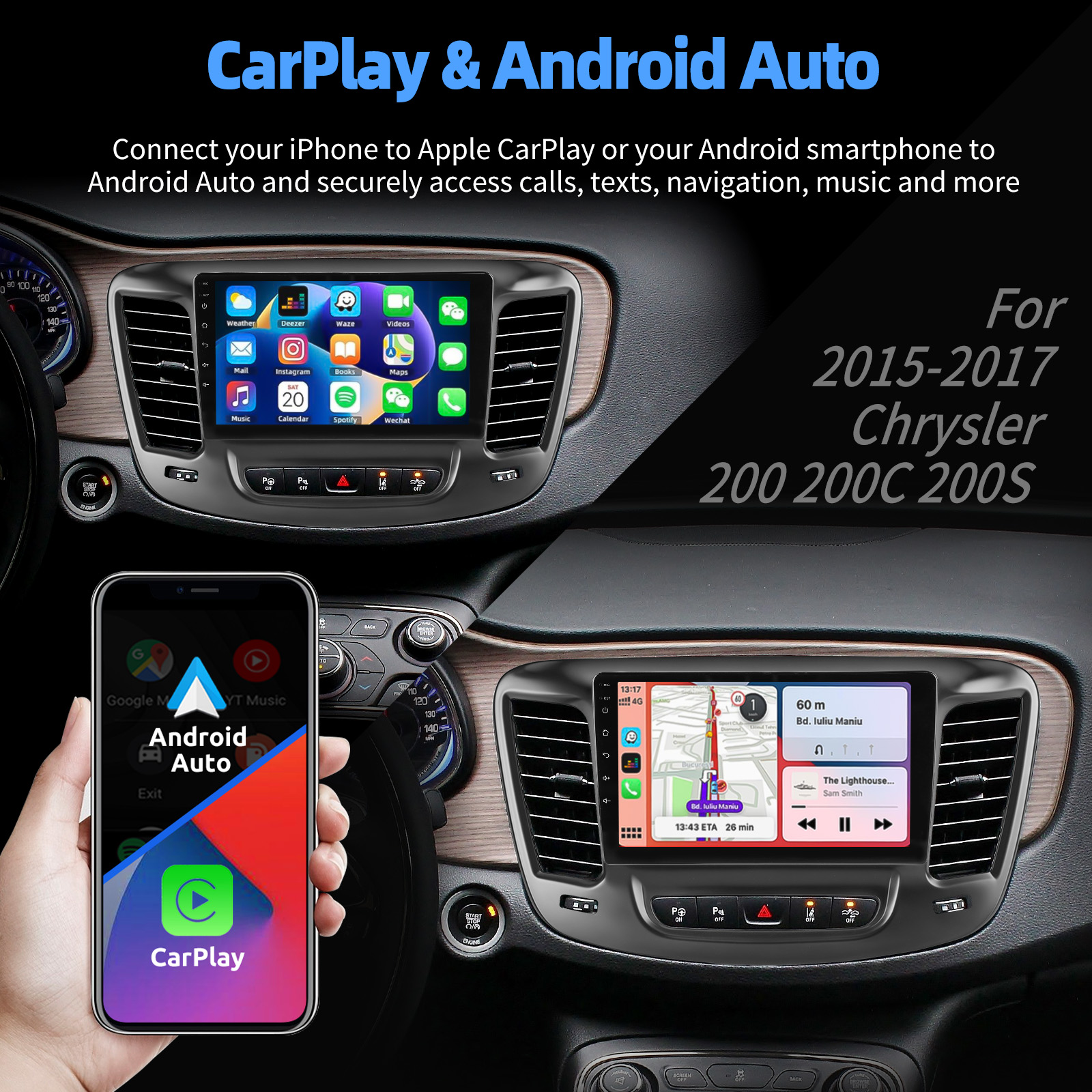 ESSGOO 9" Android 14 For 15-19 Chrysler 200 200C 200S Carplay Android Auto Car Radio GPS Navi Wifi FM BT SWC Multimedia Player