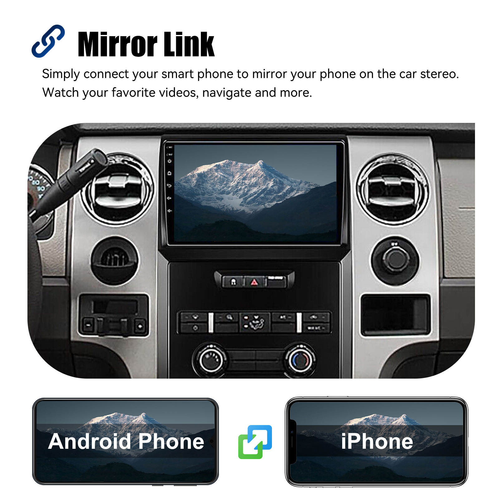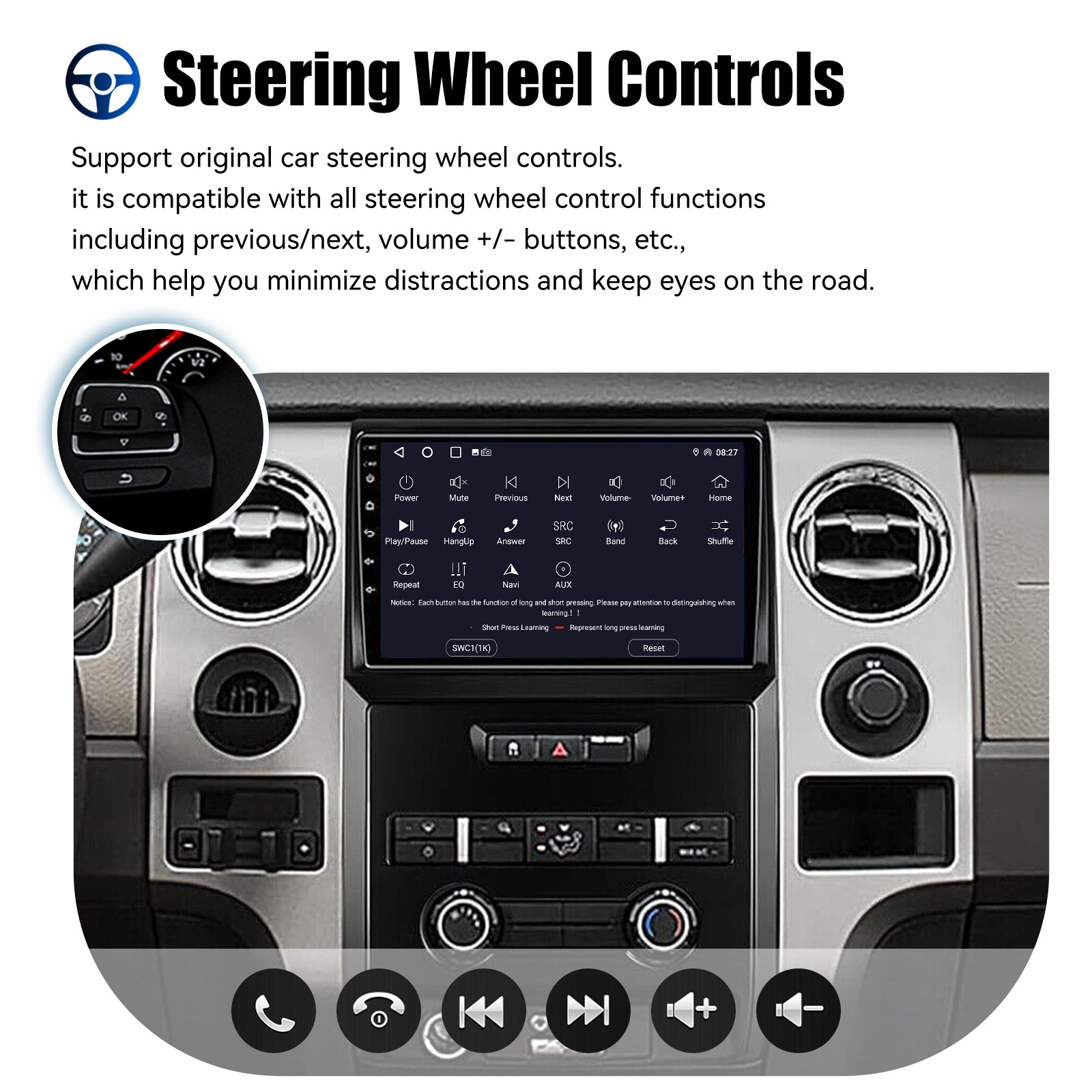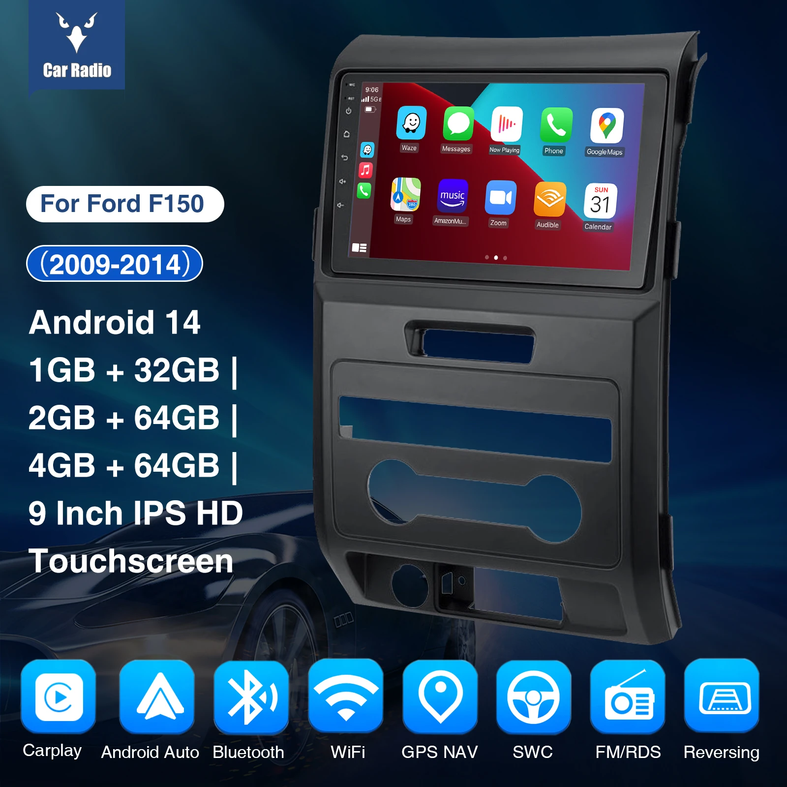 9 Inch Android 14 Car Radio For Ford F150 2009-2014: The Android car radio with 9" 1280* 720 IPS capacitive touchscreen, 32G / 64GB ROM(optional) allows you to download your favorite apps and videos, so driving is no longer boring. No extra frame, no cable change, plug and play. It comes with Canbus and supports most original functions: Steering wheel control, reverse signals and reading original computer data, etc.