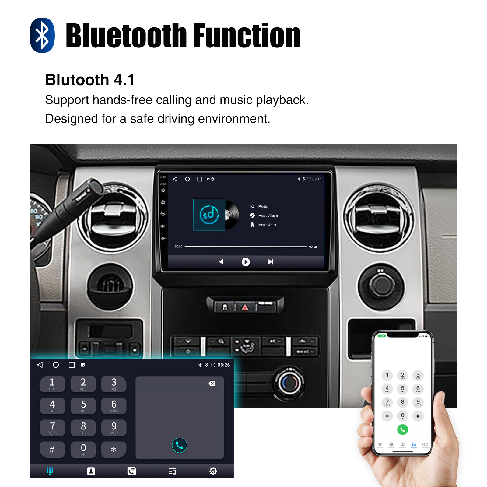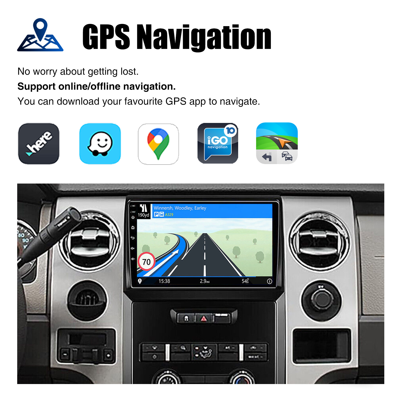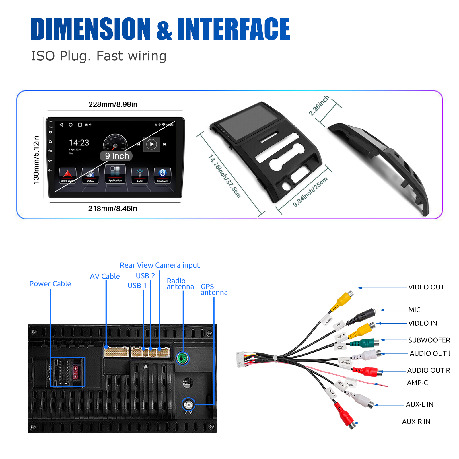 9 Inch Android 14 Car Radio For Ford F150 2009-2014: The Android car radio with 9" 1280* 720 IPS capacitive touchscreen, 32G / 64GB ROM(optional) allows you to download your favorite apps and videos, so driving is no longer boring. No extra frame, no cable change, plug and play. It comes with Canbus and supports most original functions: Steering wheel control, reverse signals and reading original computer data, etc.