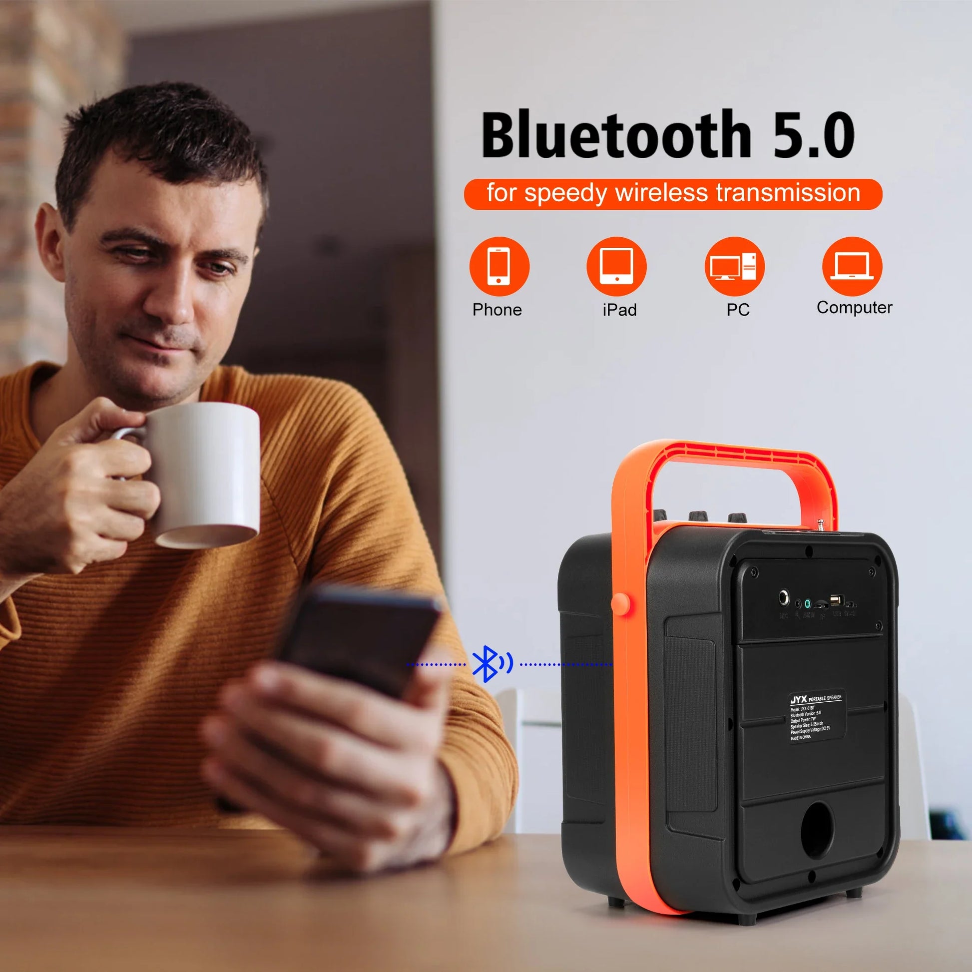 Superb HD Stereo Sound Quality: JYX Portable Karaoke Machine is equipped with a high-performance audio driver and an advanced DSP Chip, which make the sound clearer, the bass stronger, the volume more moderate, and eliminate all the noise. which can amplify your voice, play the radio as well as stream songs and it does not distort the audio even at higher volumes. You can enjoy strong, loud, and transparent bass and treble.