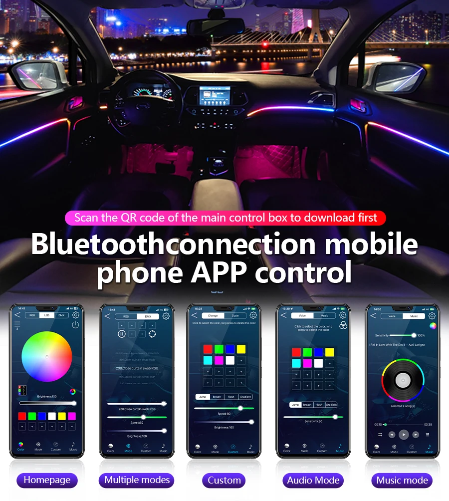 FILIPLI For The MERCEDES-BENZ CLA For 2016 Smart 64 RGB Color Car Ambient Self-Adhesive Light With APP Control Easy To Install