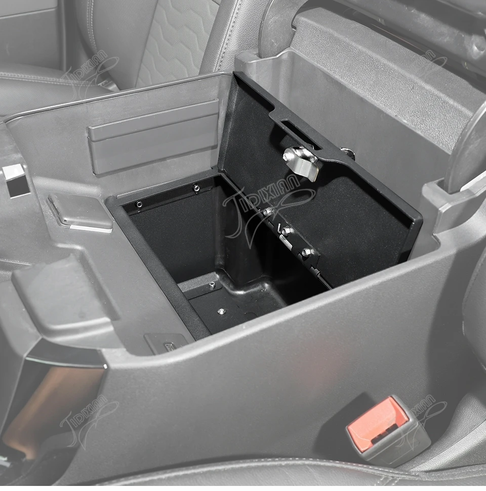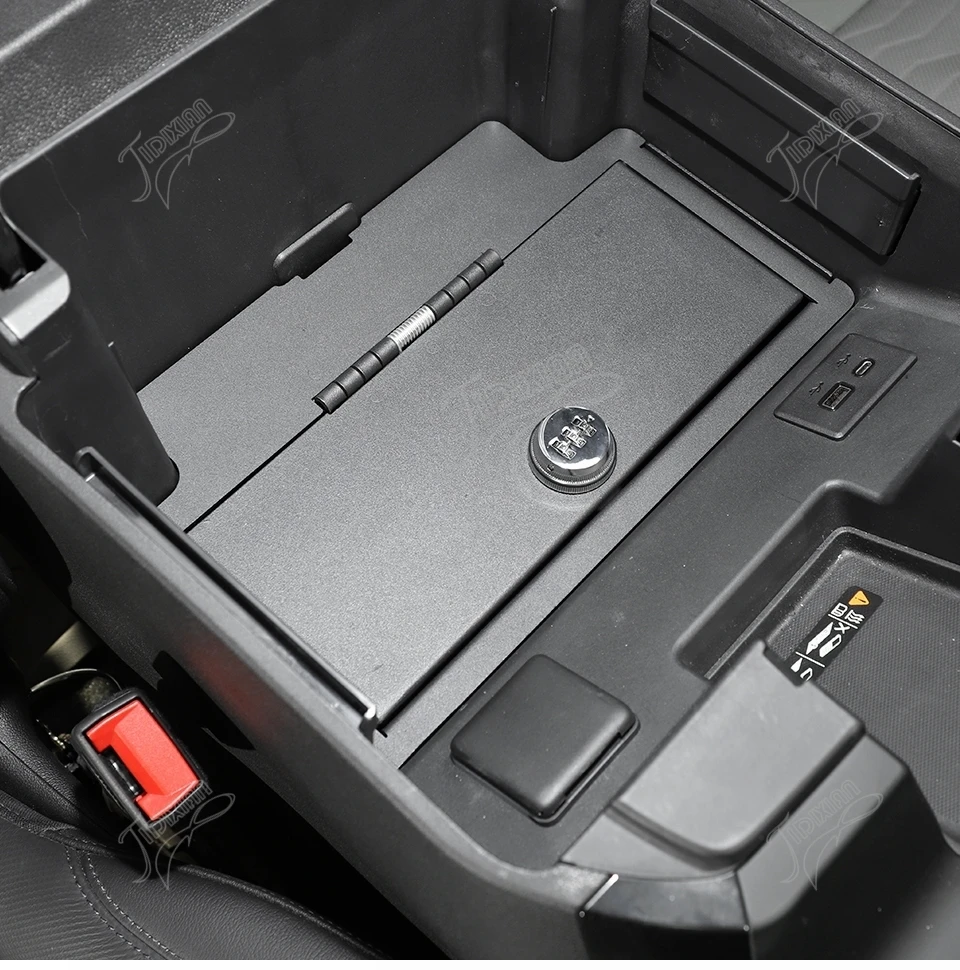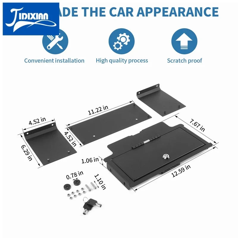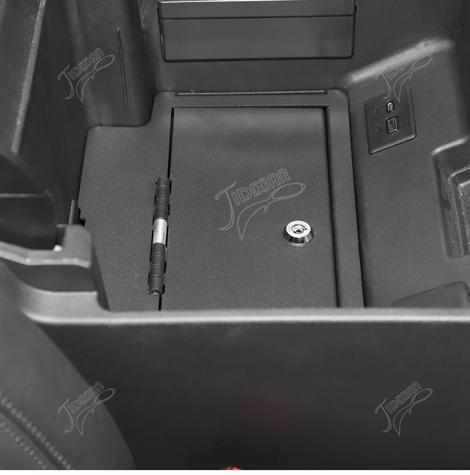 8. Cool Design: Center console safe storage box, features fully welded locking components.