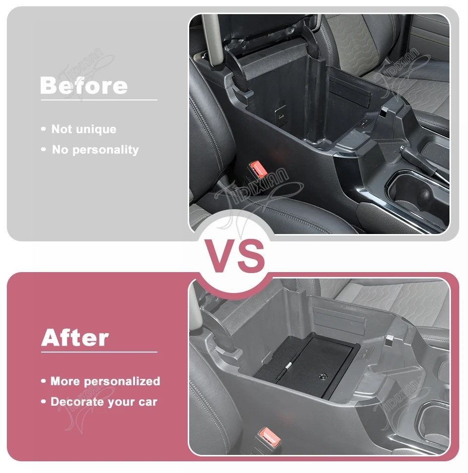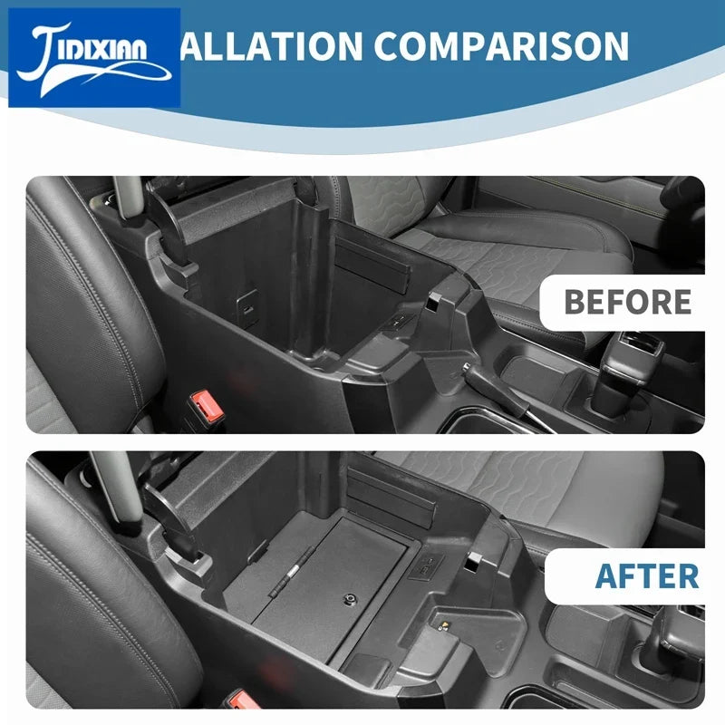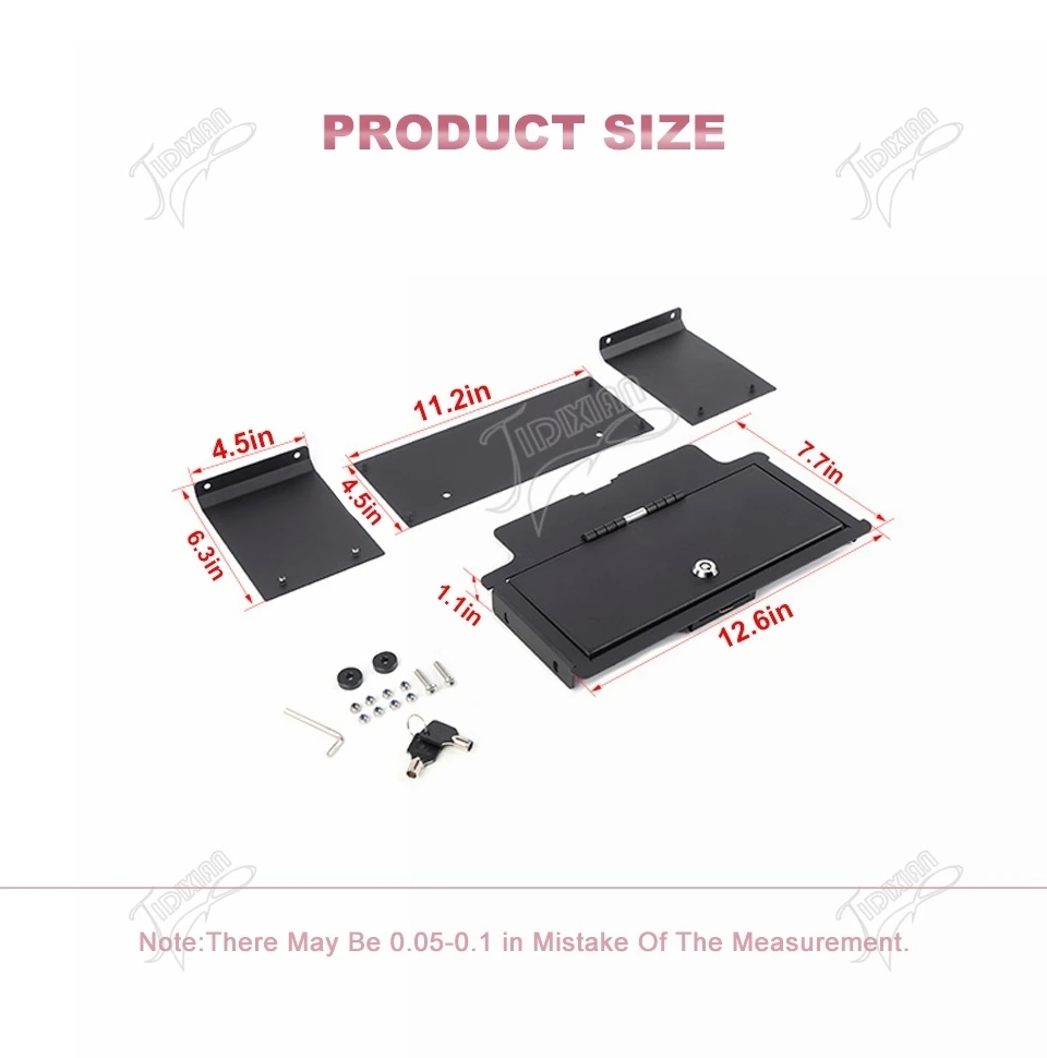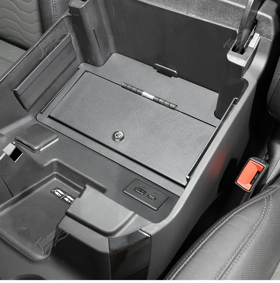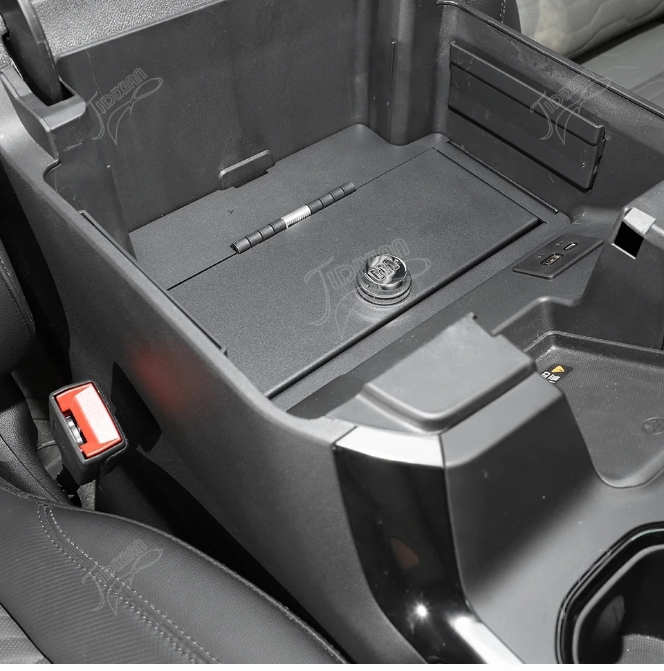 8. Cool Design: Center console safe storage box, features fully welded locking components.
