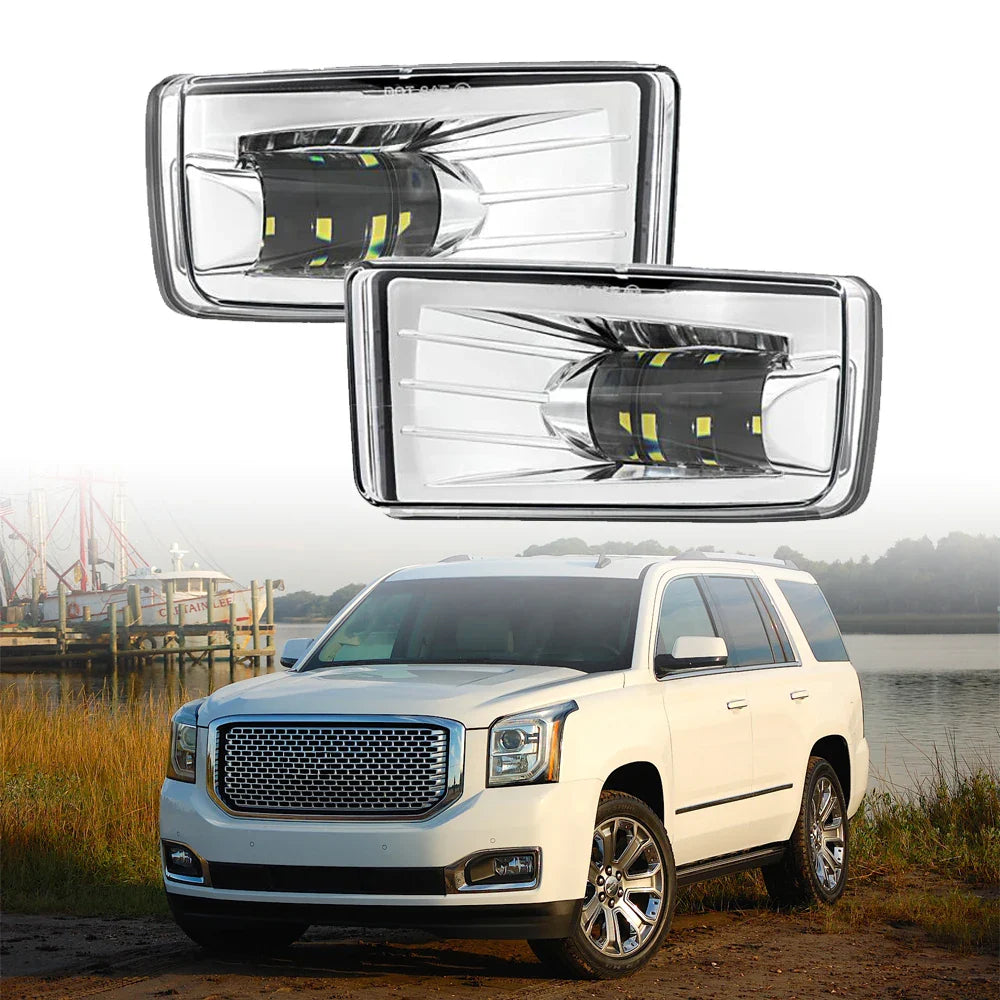 Fit for CHEVY TAHOE 2007-2017 GMC YUKON 2015-2016 Black Sliver Lights LED Fog Lights W/ 5202 Bulbs Fog Lamps Assembly