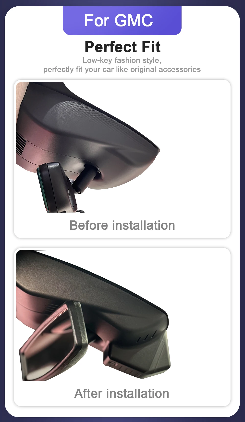 Fitcamx OEM Style 4K UHD Dashcam for GMC Yukon DENALI AT4 2021-2025, Built-in WiFi, Night Vision, Plug & Play, No Wires
