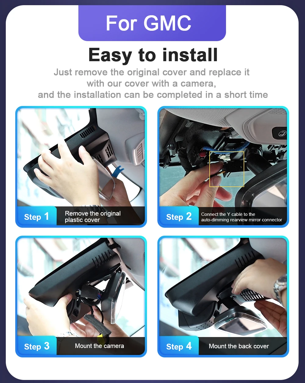 Just remove the original back cover and replace it with FITCAMX dash cam and the installation of it is a breeze.