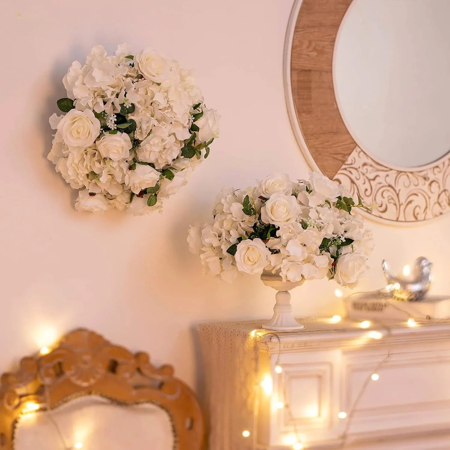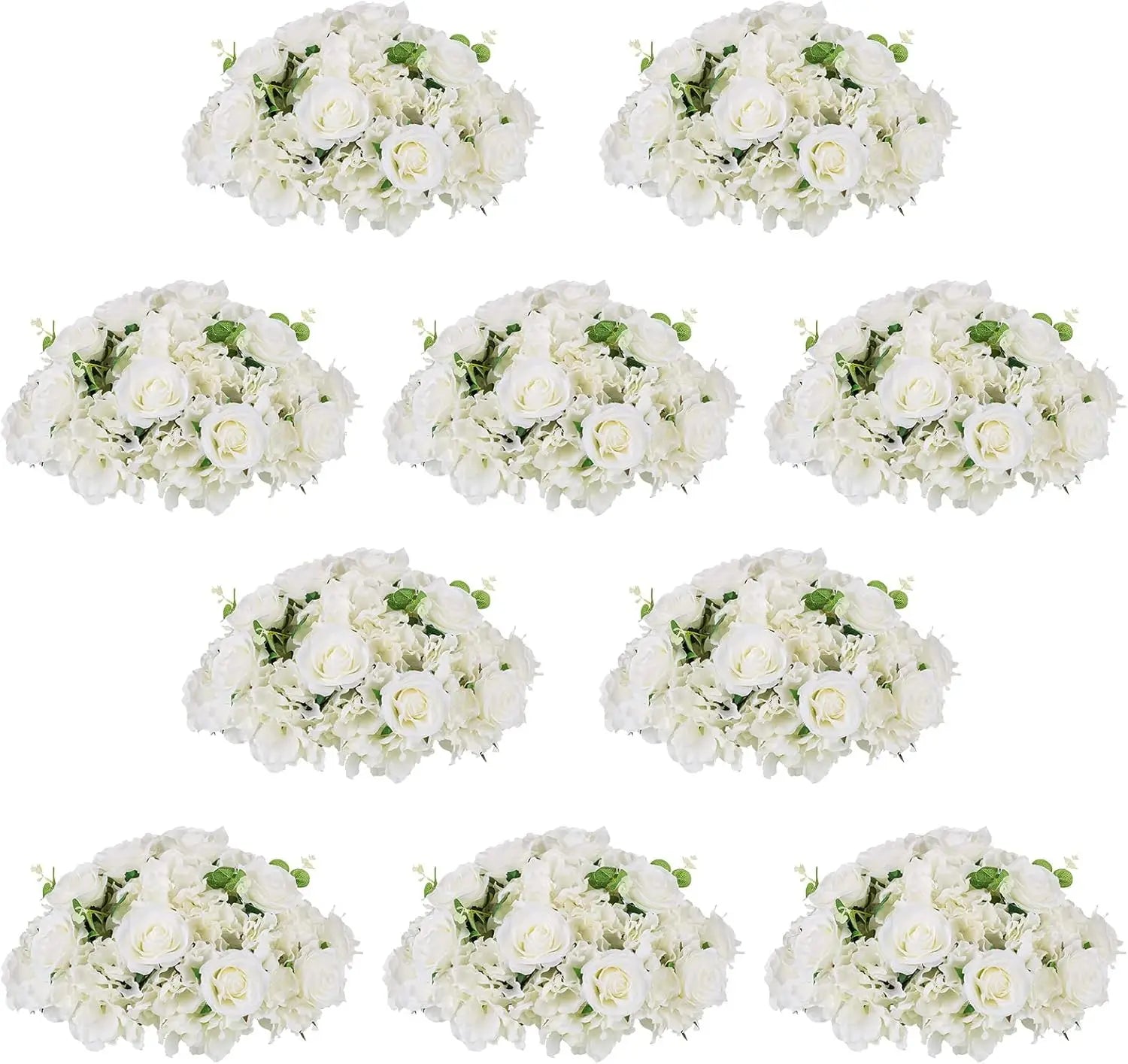 Flower Ball Arrangement Bouquet - 10 Pcs 15.7 inch Diameter White Fake Flowers Roses Balls for Centerpieces Tables Rose