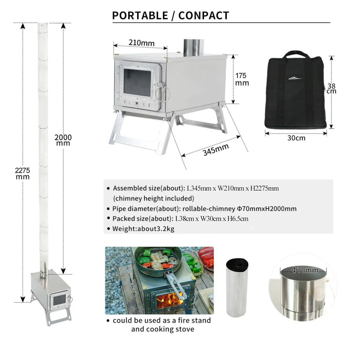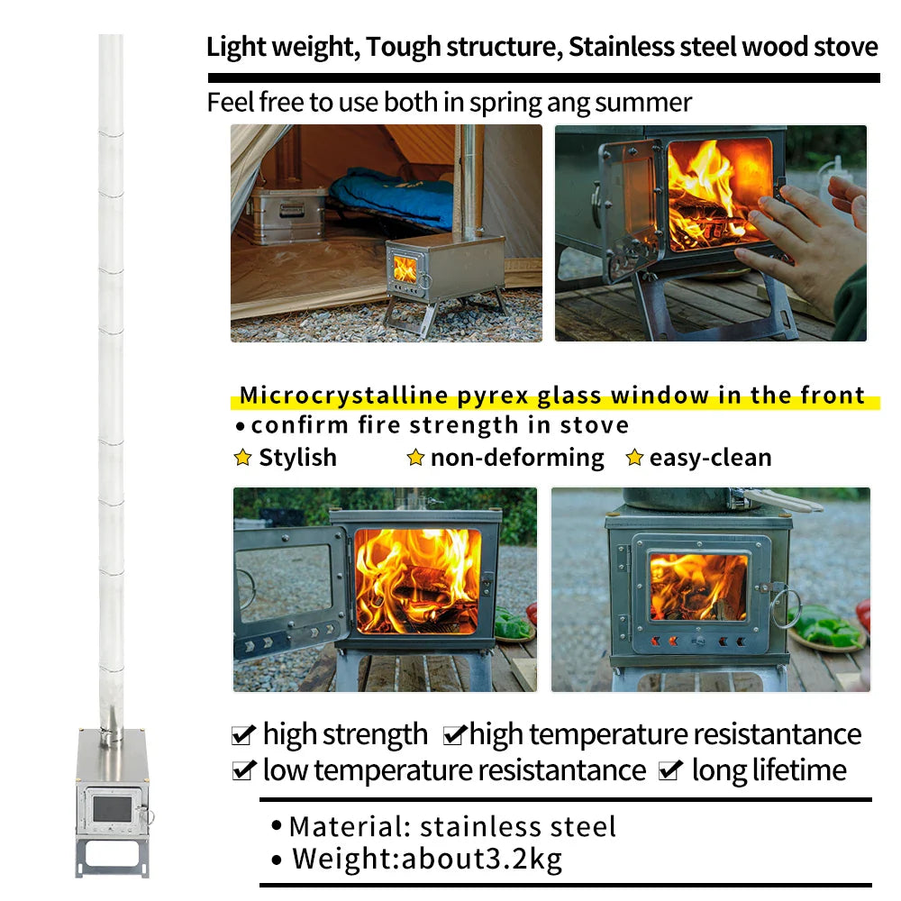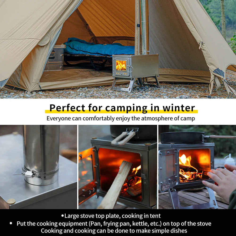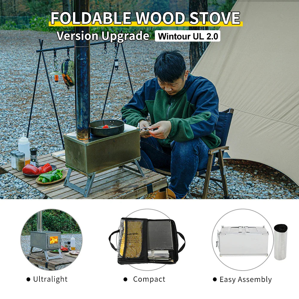 Folding Woodstove Durable Portable Foldable Wood Burning Stainless Steel Firewood Stove For Outdoor Camping Heat Oneself & Food