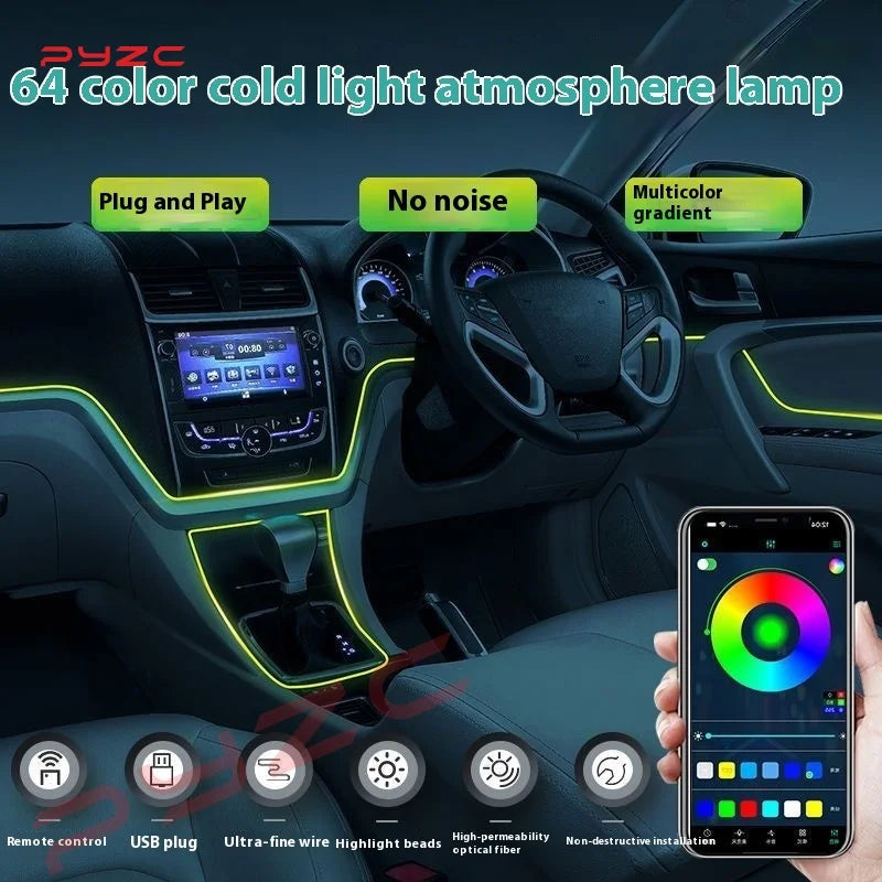 For BenZ B-Class APP Control 64 Color RGB Symphony Car Ambient Light Strip Interior Acrylic Guide LED Atmosphere Lamp