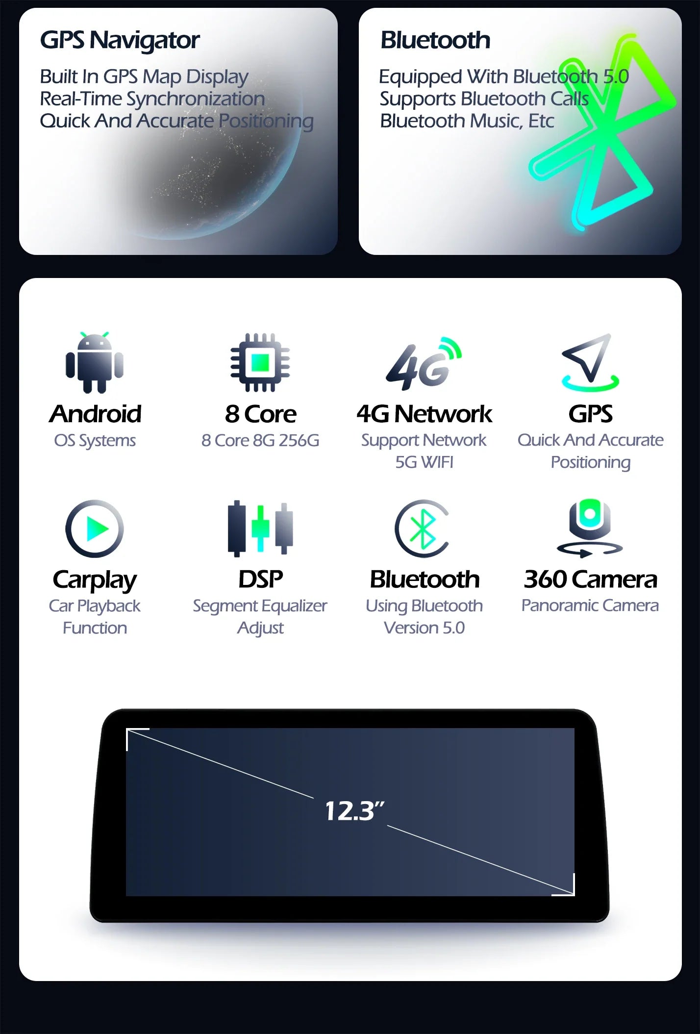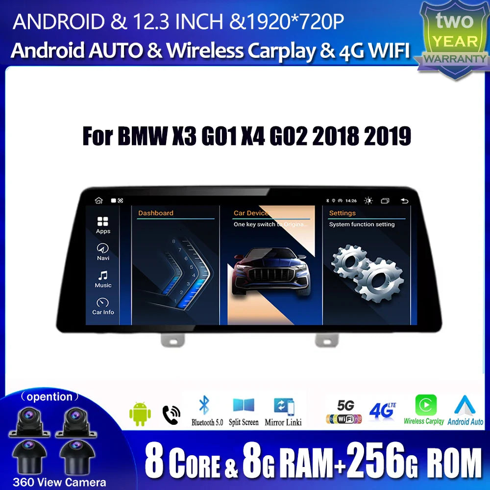 For BMW X3 G01 X4 G02 2018 2019 Car Carplay 12.3 Inch Android Touch Screen Monitor Stereo Speakers Radio Multimedia Player Auto