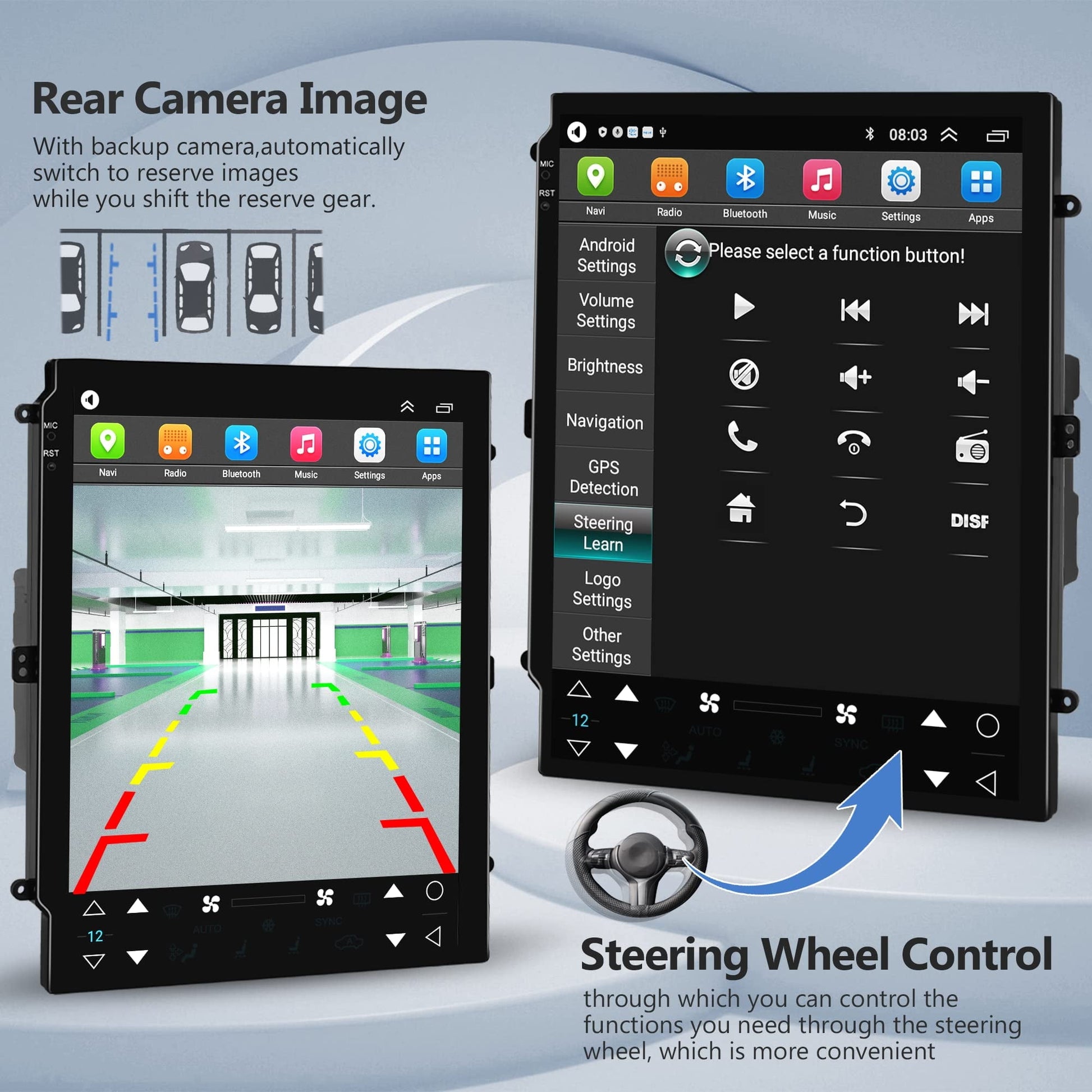 Rear View CameraCar stereo with backup camera, with easy installation and operation rear-view camera, when the vehicle shifts into reverse, the car stereo screen will automatically display the reverse image and record the traffic, make your daily reversing safer and more convenient.