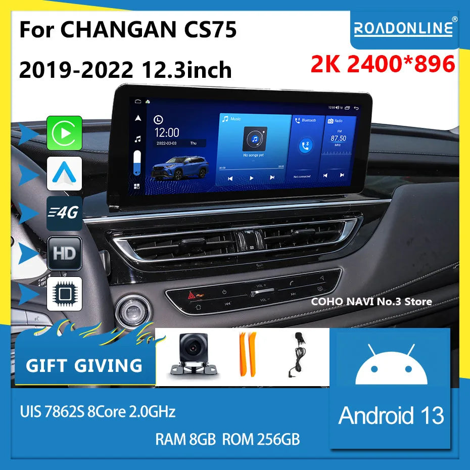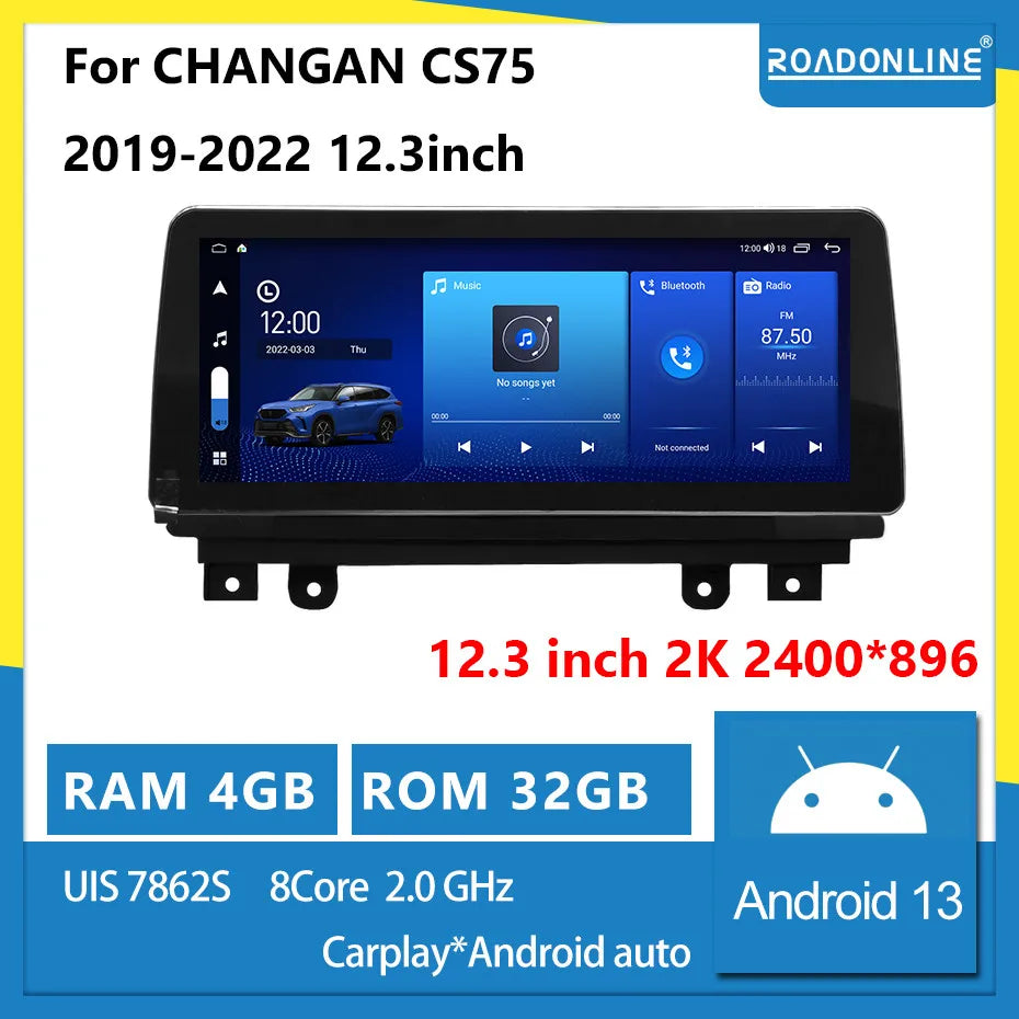 For CHANGAN CS75 2019-2022 Android13 12.3inch 2400*896 2K screen QLED 8Core 8+256G Car Multimedia Player Stereo Radio
