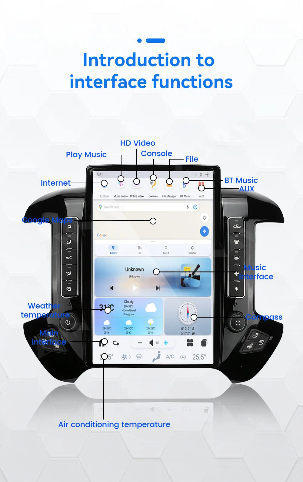 For Chevrolet Silverado 2013-2019 GMC SIERRA 2014-2020 audio 2 din android receiver tesla style auto multimedia DVD play GPS