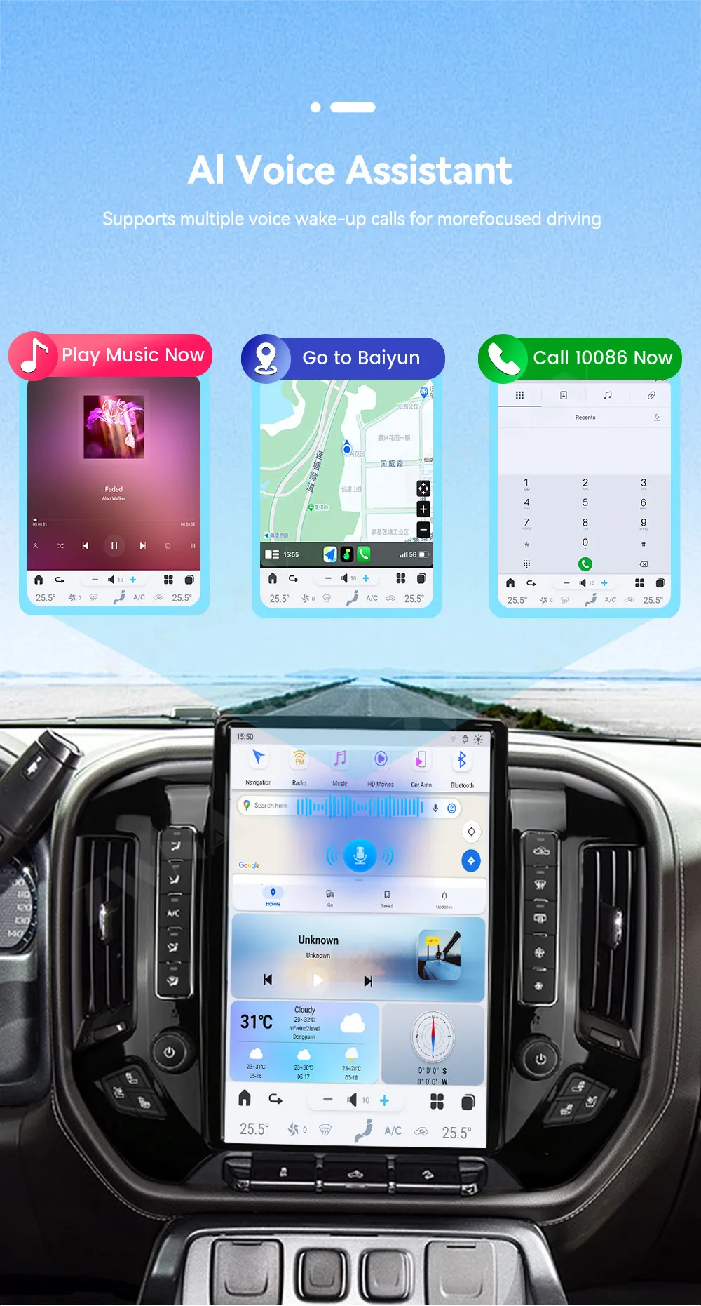 11.Android Auto: can perform the basic functions of an Android smartphone and use multiple third-party applications through the car infotainment interface.