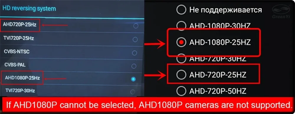 * The Camera support both AHD and CVBS video signal, it can work with both AHD Android monitors and all CVBS TFT monitors.