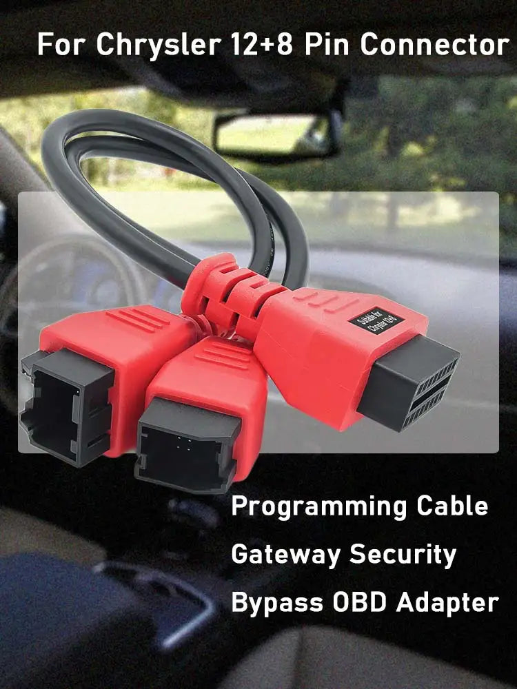 This 12+8 Programming Cable is used for Chrysler's Security Gateway Module (SGM) which limits an aftermarket scan tool to only reading DTCs and viewing data,can be used with Autel Maxisys Series like IM608, Launch devices like Launch X431 V, OBDSTAR devices like OBDSTAR X300 DP Plus, XTOOL devices like XTOOL PAD3 etc.