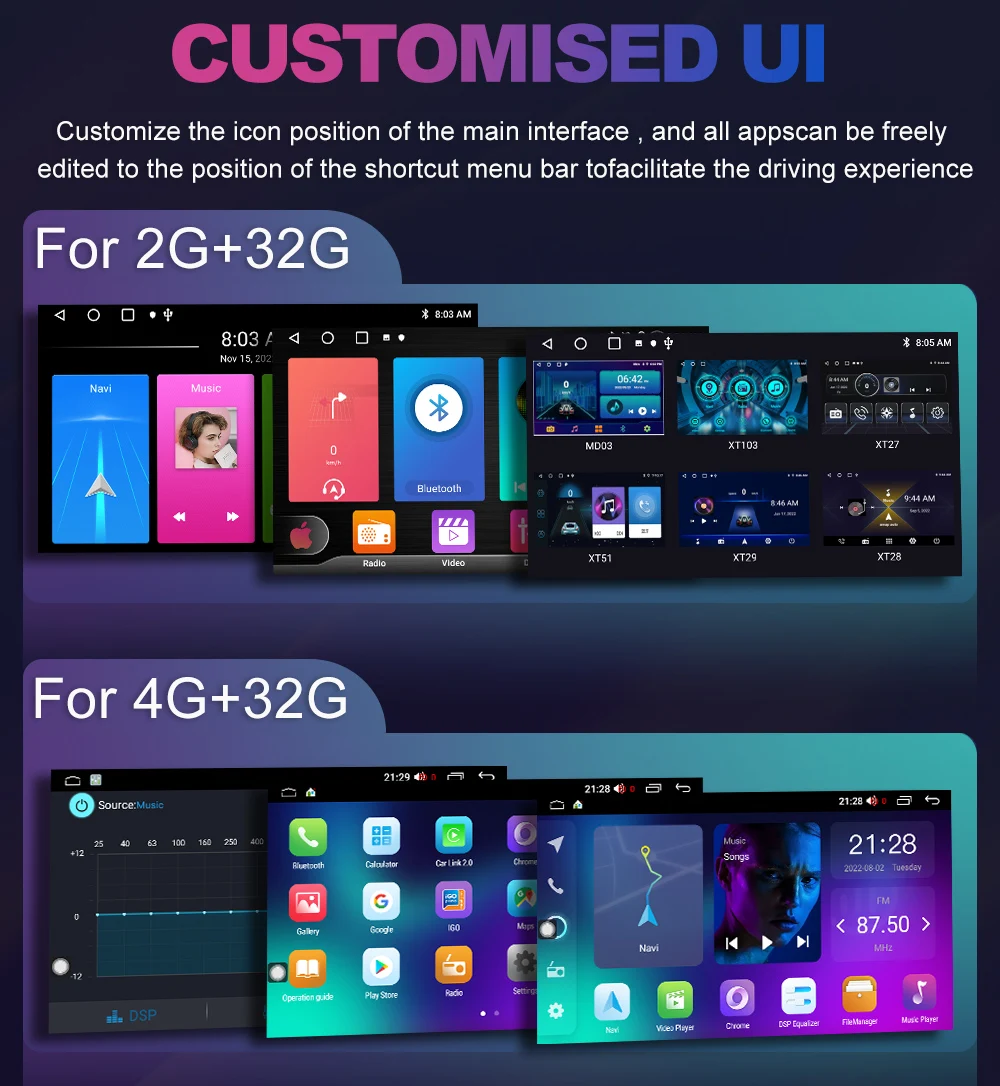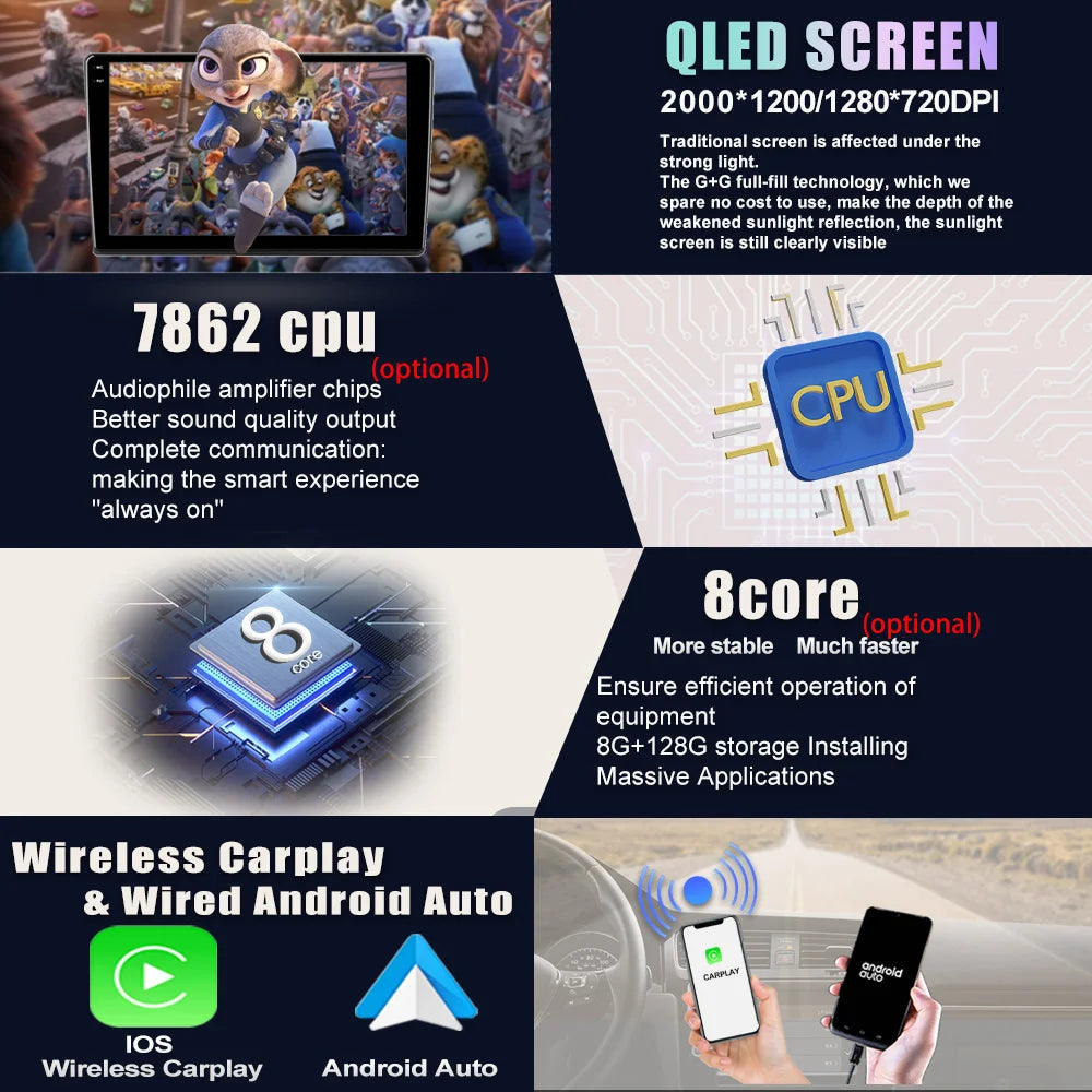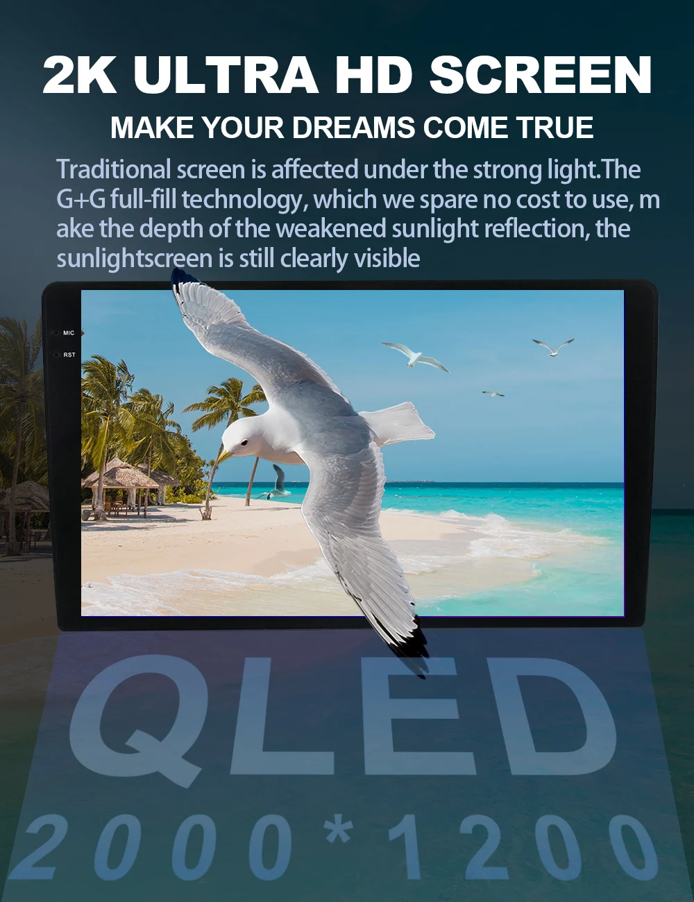 Super HD 2K+QLED display 2000*1200 resolution (first recommended), 7/9/10 inch QLED 1280*720 (optional) Ultra HD digital screen, full capacitive touch screen, easy to operate, larger well-designed on-board user interface options give you a choice.