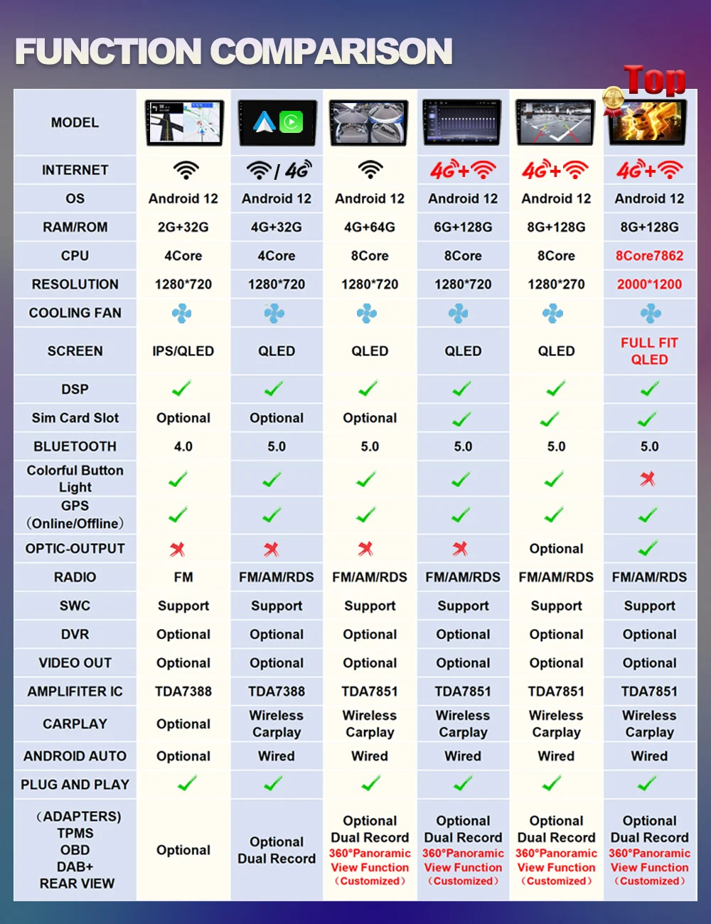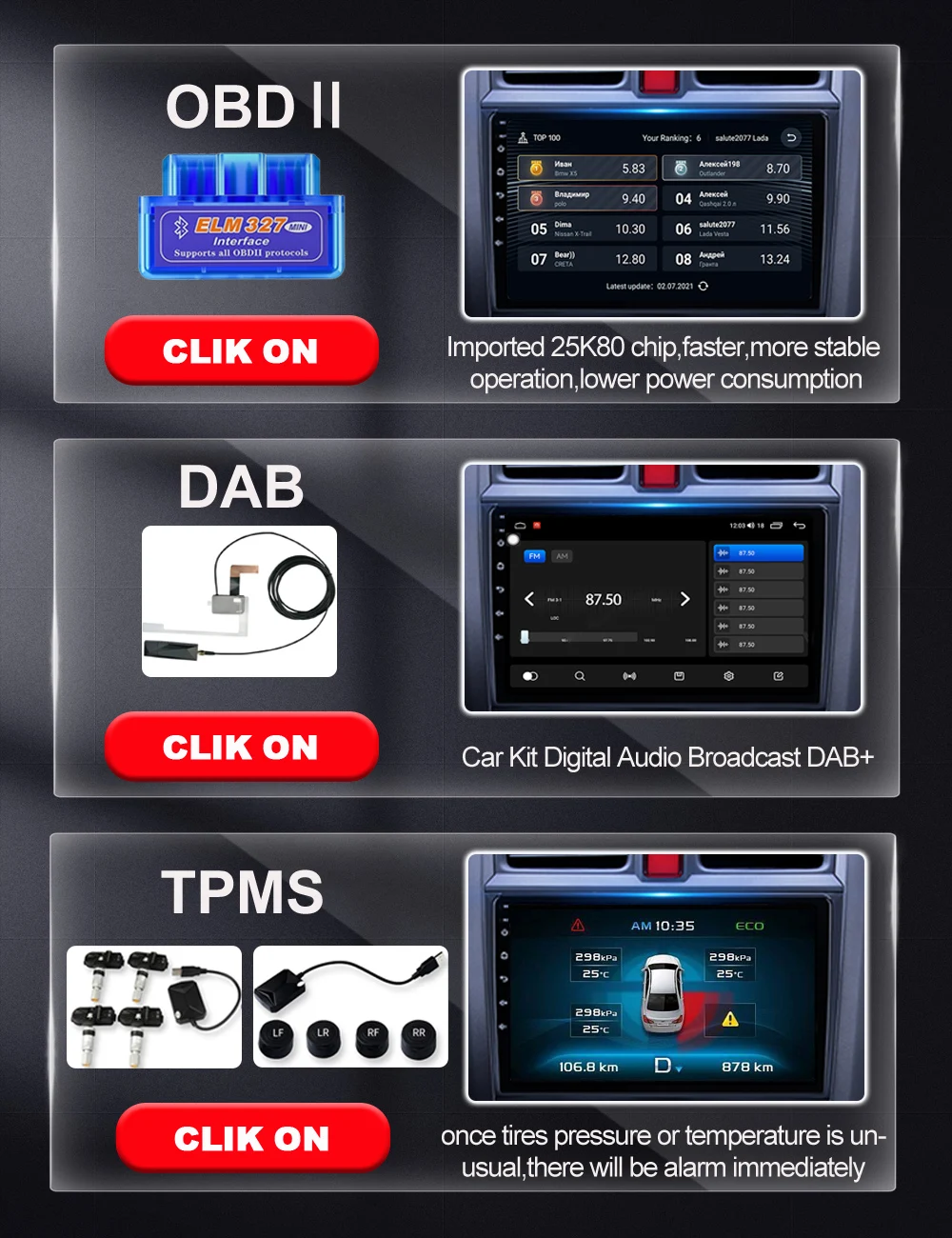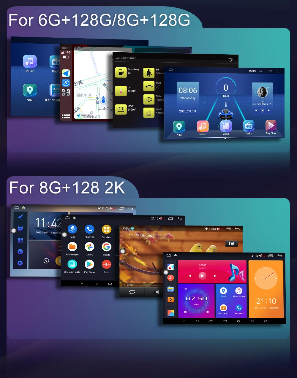 Super HD 2K+QLED display 2000*1200 resolution (first recommended), 7/9/10 inch QLED 1280*720 (optional) Ultra HD digital screen, full capacitive touch screen, easy to operate, larger well-designed on-board user interface options give you a choice.