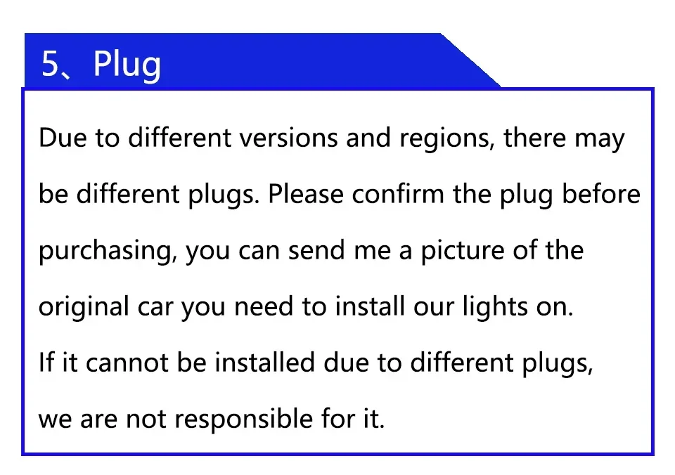 A: Firstly, make sure the model year and confirm car image. Each of our products will be attached matching car pictures, dear buyer should check whether your car headlights appearance and connectors same as the picture we offered. If they are consistent, and that is certainly appropriate. If you are not sure, please send your car picture to me.